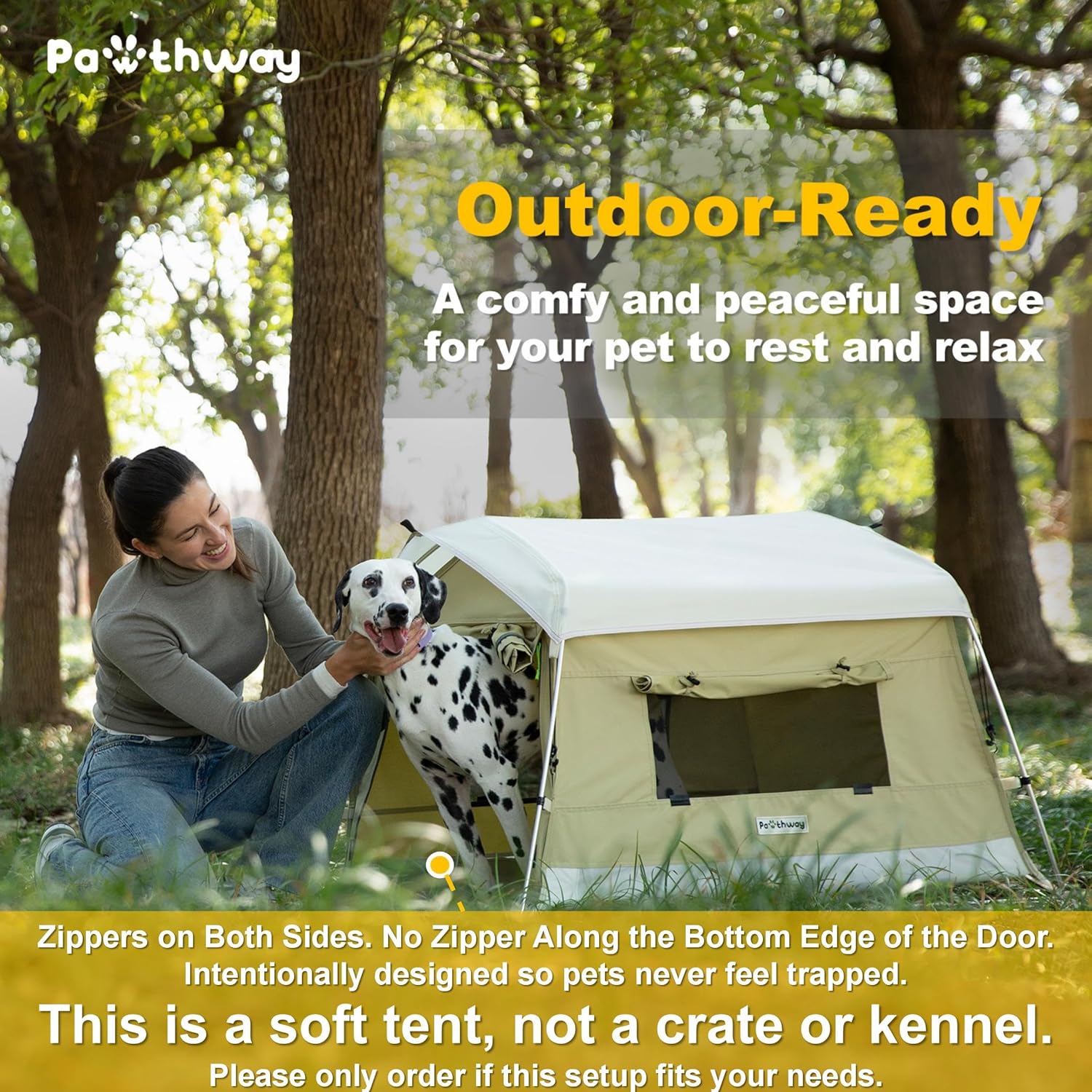 - This Is a Soft Tent, Not a Crate or Kennel: The door zips on both sides, with no zipper along the bottom edgeâso your pet can rest or hide without feeling trapped or stressed. This is an intentional design, not a flaw. Do not leave your pet unattended inside the tent, especially in outdoor or unfamiliar settings. Please only order if this setup fits your needs.