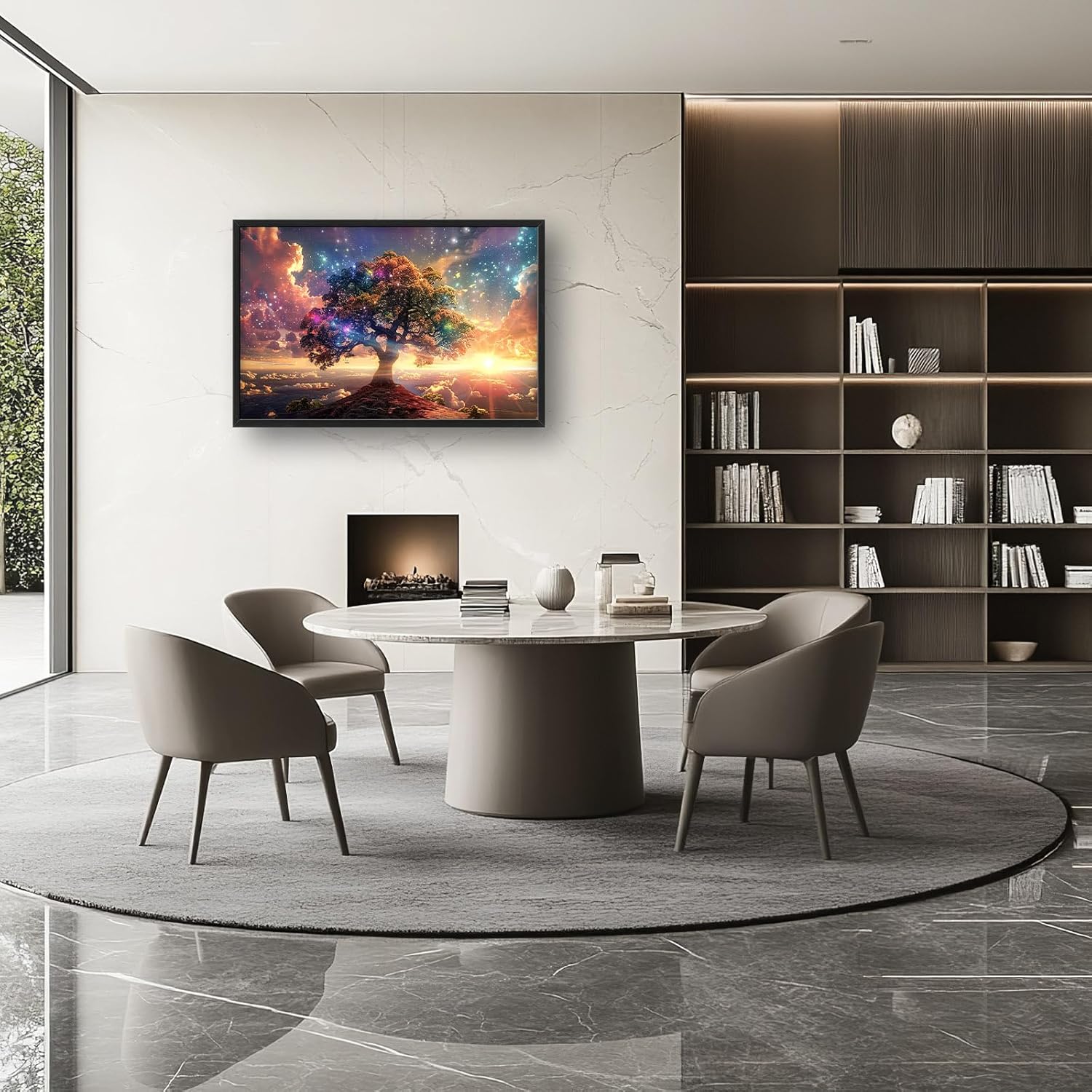 - 【Unique Design】A beautiful tree of life with rainbow colors, sitting atop a mountain in space. The sky is full of stars and galaxies, and the sun shines brightly through the clouds, creating an atmosphere of peace and tranquility. This fantastical, colorful, cinematic, and epic scene is rendered with stunning, intricate details in a hyper-realistic style.