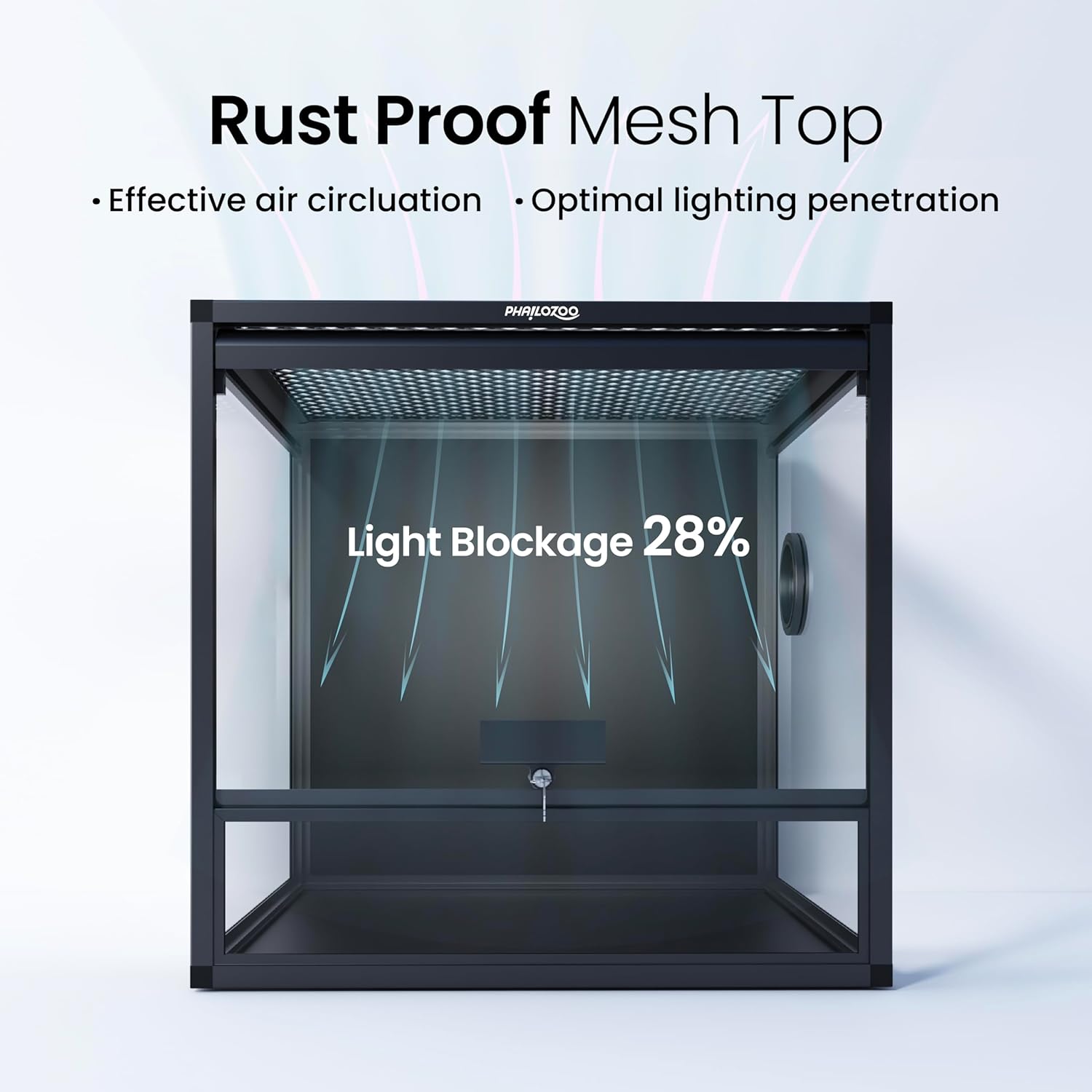 - ăPerfect for BeginnersăPhailozoo 24-gallon reptile tank with single grommet measures 18'Lx18''Wx18''H. It only weighs 16.5 pounds. Easily assembled in six steps, perfect for first time reptile keepers.