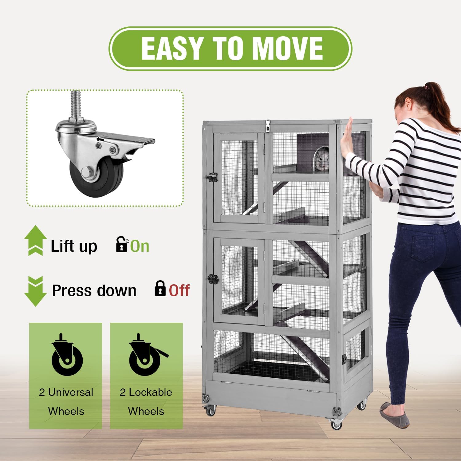 - 【Small Animal Cages Upgrade Version】🚪Design Wheels to make this Rabbit Cage easily movable. Four casters allowing for effortless movement and relocation. This feature makes it convenient for you to reposition the cage within your home or clean the surrounding area.
