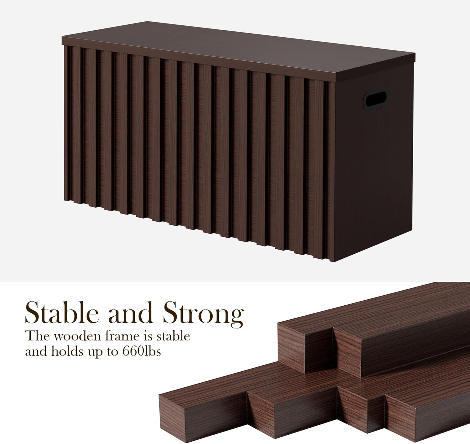 UEV Storage Bench,39.4" Wood Box, Storage Trunk with 2 Safety Hinges, Ottoman Storage Chest, Fluted Storage Bench for Bedroom, Entryway, Living Room (Walnut)