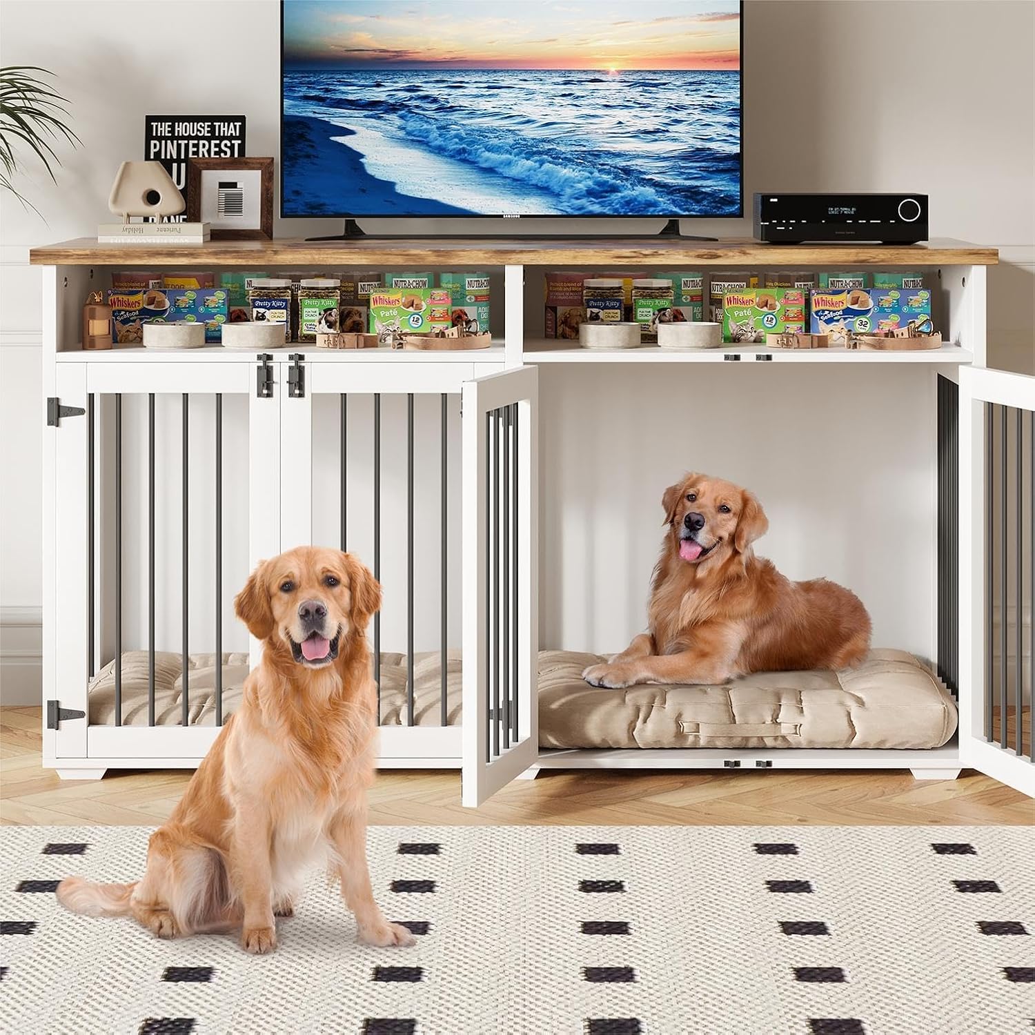- MULTIFUNCTIONAL DOG KENNEL FURNITURE:This dog kennel indoor is the perfect combination of functionality and aesthetics. It can also double as a TV stand or side table, with a comfortable and spacious space provided for your dogs to rest