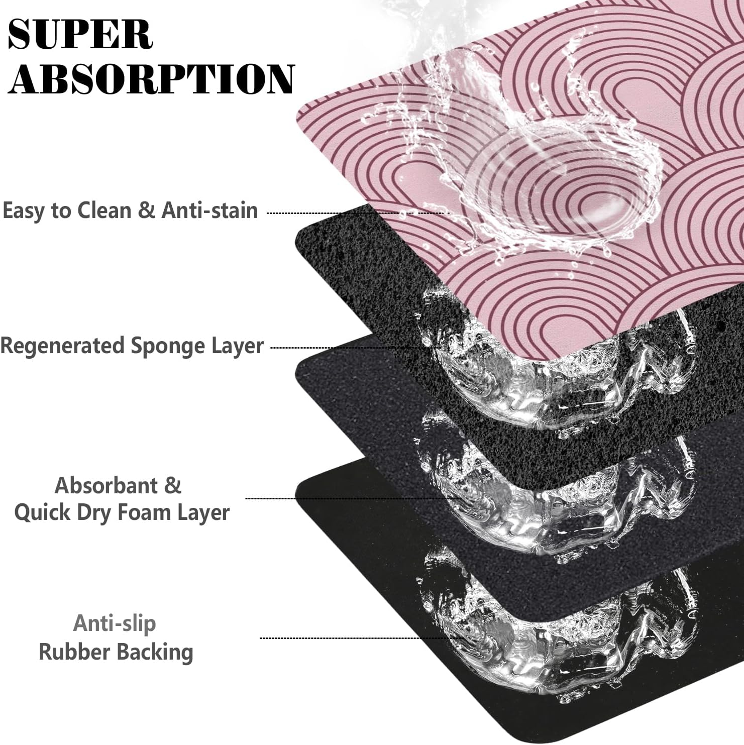 - Non-Slip Rubber Backing: Rubber backing makes sure the pet mats for food and water stay in place firmly. The durable water bowl mat is tear-resistant, which prevent your pets from ingesting it accidentally.