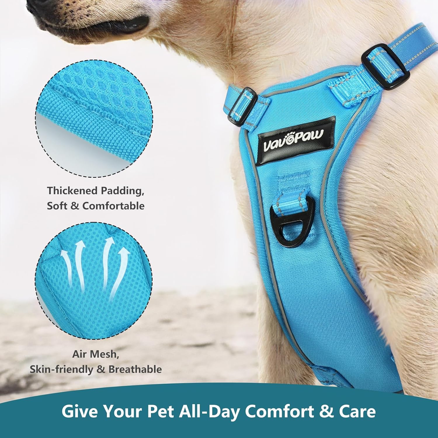 - SOFT & COMFORTABLE: This vest harness is made of an extremely strong Oxford fabric (Polyester), filled with soft sponge, and lining with an elastic mesh cloth to make dogs feel soft and comfortable.