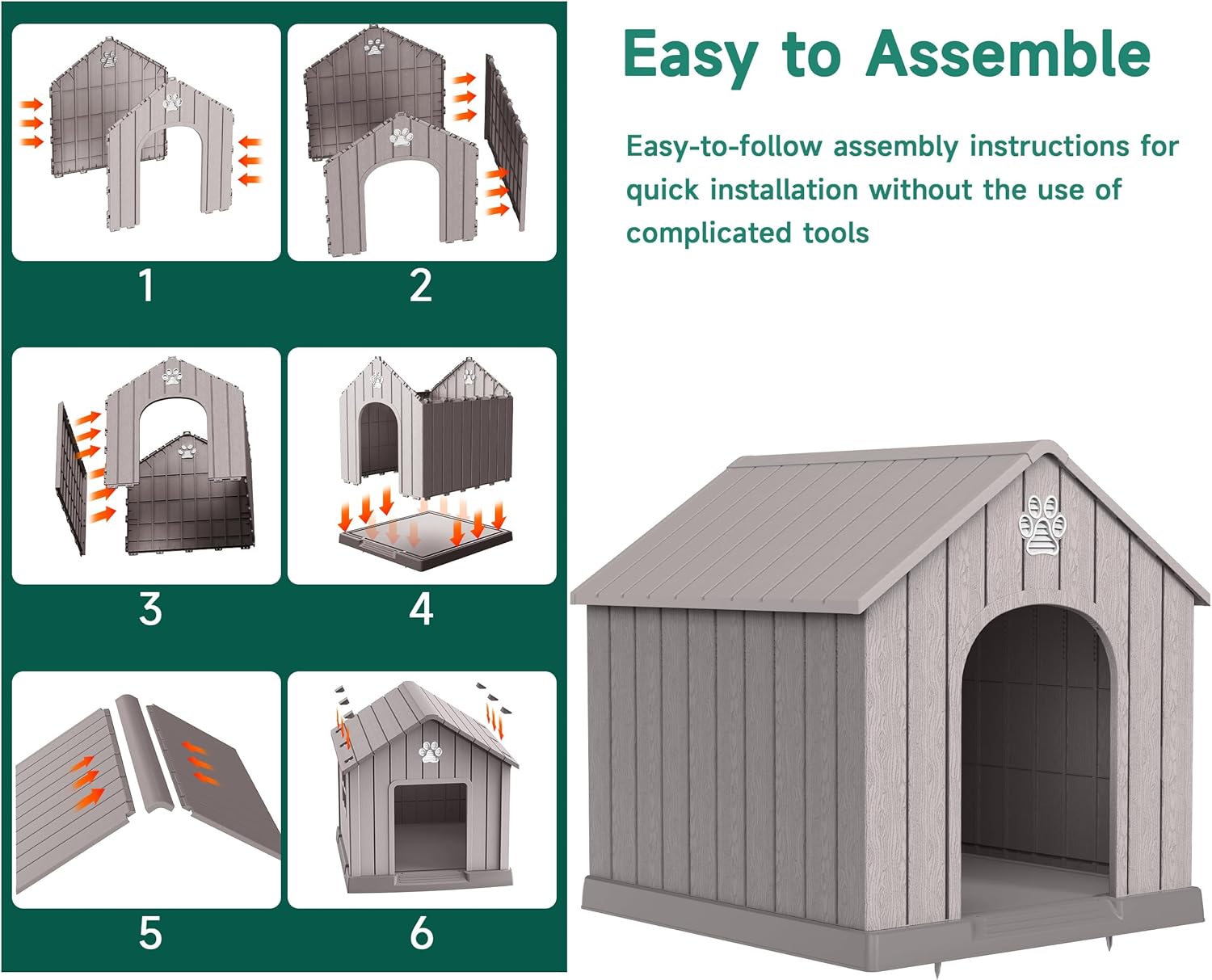 - Sturdy and Durable: This big dog house is made of high quality PP (polypropylene) material, which is extremely durable.The PP material is scratch-resistant, abrasion-resistant, and also waterproof. It can withstand all kinds of weather conditions, such as rain and sunlight exposure, and is not easily damaged.