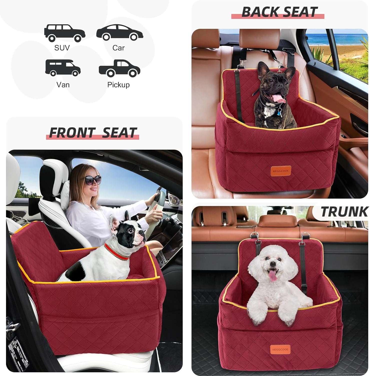 - Comfort and Safety : The surface of dog booster car seat is made of short plush fabric, super soft and comfortable, and the bottom is filled with high-density egg-shaped foam to provide superior comfort and support, effectively reducing the impact of road bumps,together with the non-slip bottom and headrest straps, the dog car bed will be more stable to ensure your dog's safety
