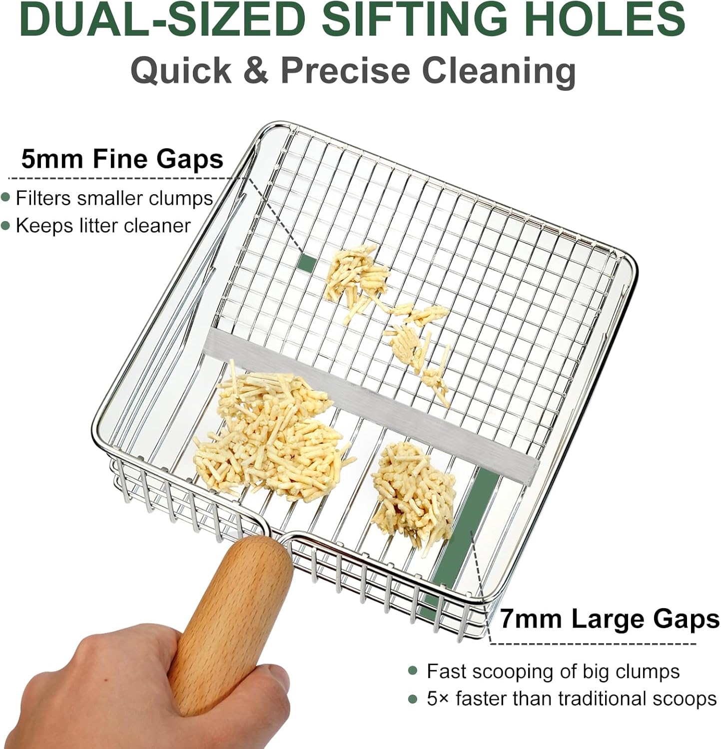 - One Scoop for Two Purposes, Faster Sifting: This metal cat litter scoop features a fine grid design at the front end to capture fine particles and cat waste accurately, while the wide-slit design at the back end easily scoops up larger waste pieces. This allows for efficient cleaning and recycling. It’s a nice cat scooper for litter box