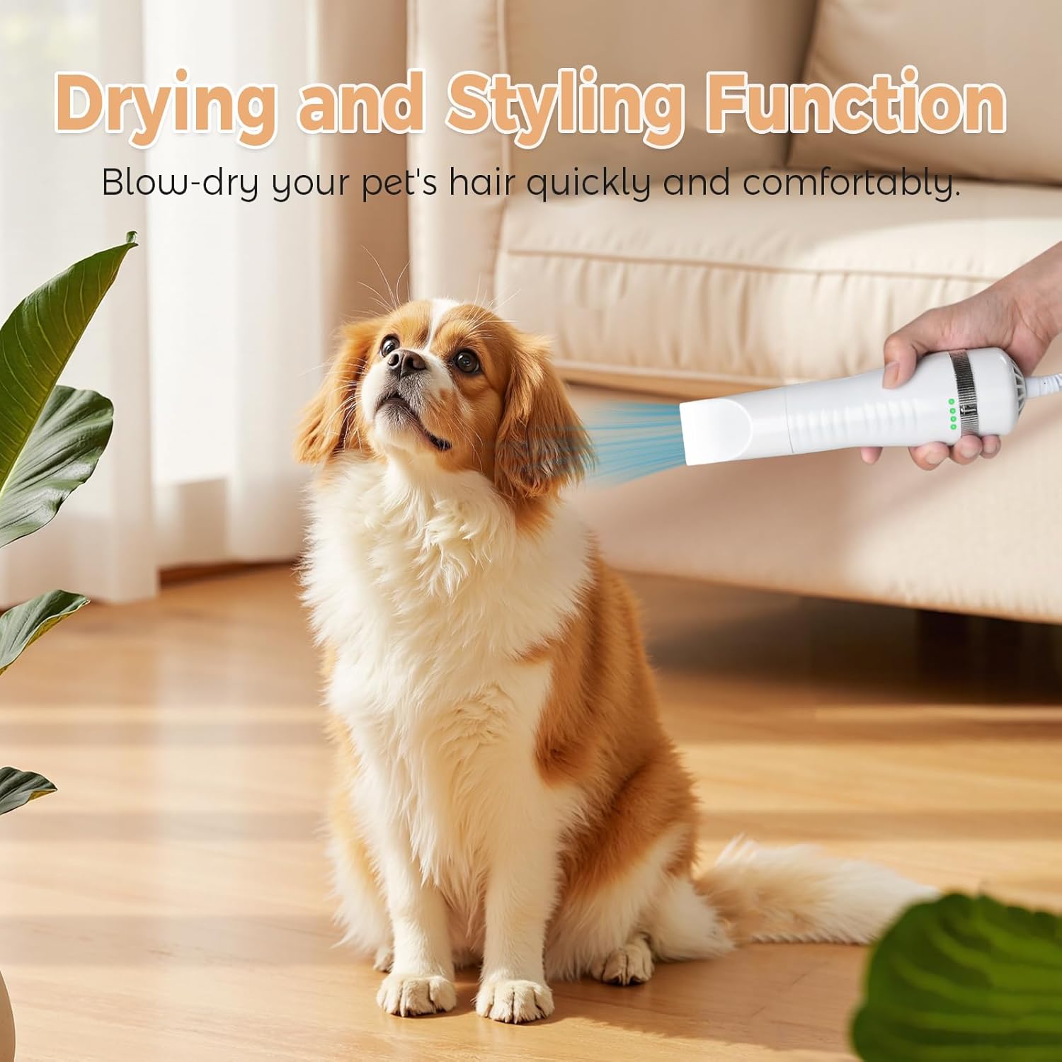 - 600W High-Power Pet Dryer: Innovatively featuring a 600W high-power pet drying function, this cat brush also combines mist-spraying grooming, deshedding, and one-click cleaning. With strong power, it quickly dries pet hair, easily solving hair care challenges