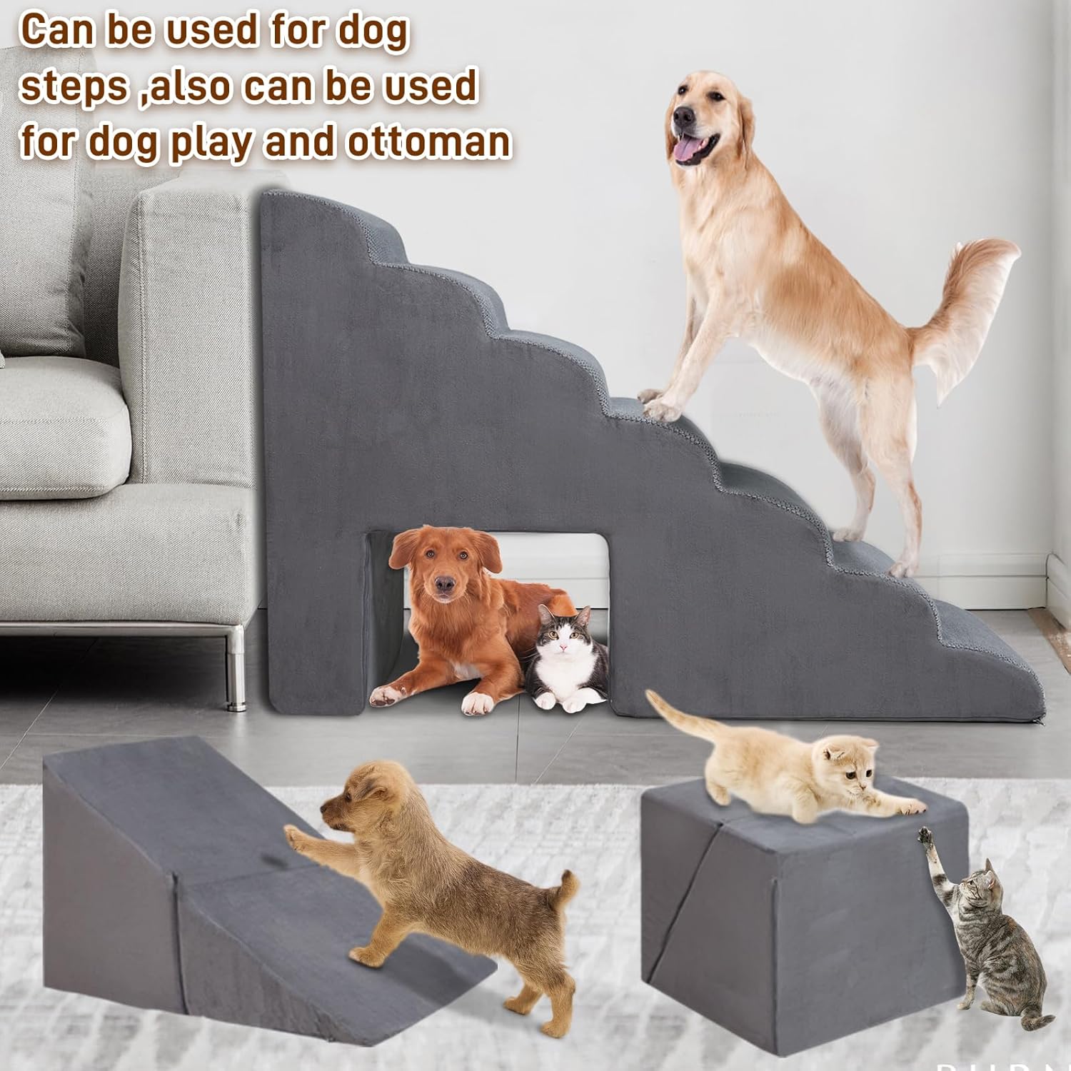 - [Special Notice]: Our dog stairs is packed in a vacuum compression package,please make sure to open all packages before use, let the sponge come in contact with the air, and it takes time to rebound after opening. please patiently wait for 24-48 hours until it has fully rebounded to normal shape. If you encounter any problems during the use, please feel free to contact us