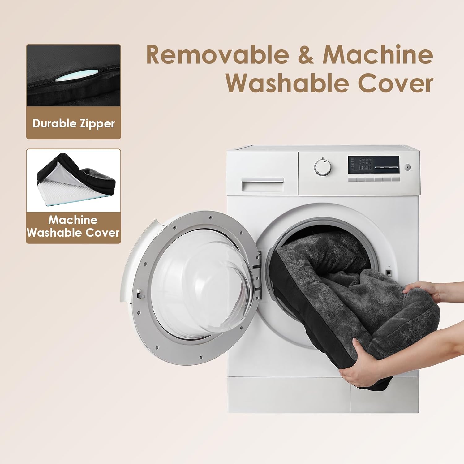 - CARE GUIDELINES: This pet bed retreat boasts a removable, machine-washable cover with a convenient zipper. Simply extract the foam core and launder the cover. Kindly remember, the foam insert is not designed for washing. Postunpacking, allow 24-48 hours for the bed to fully inflate.