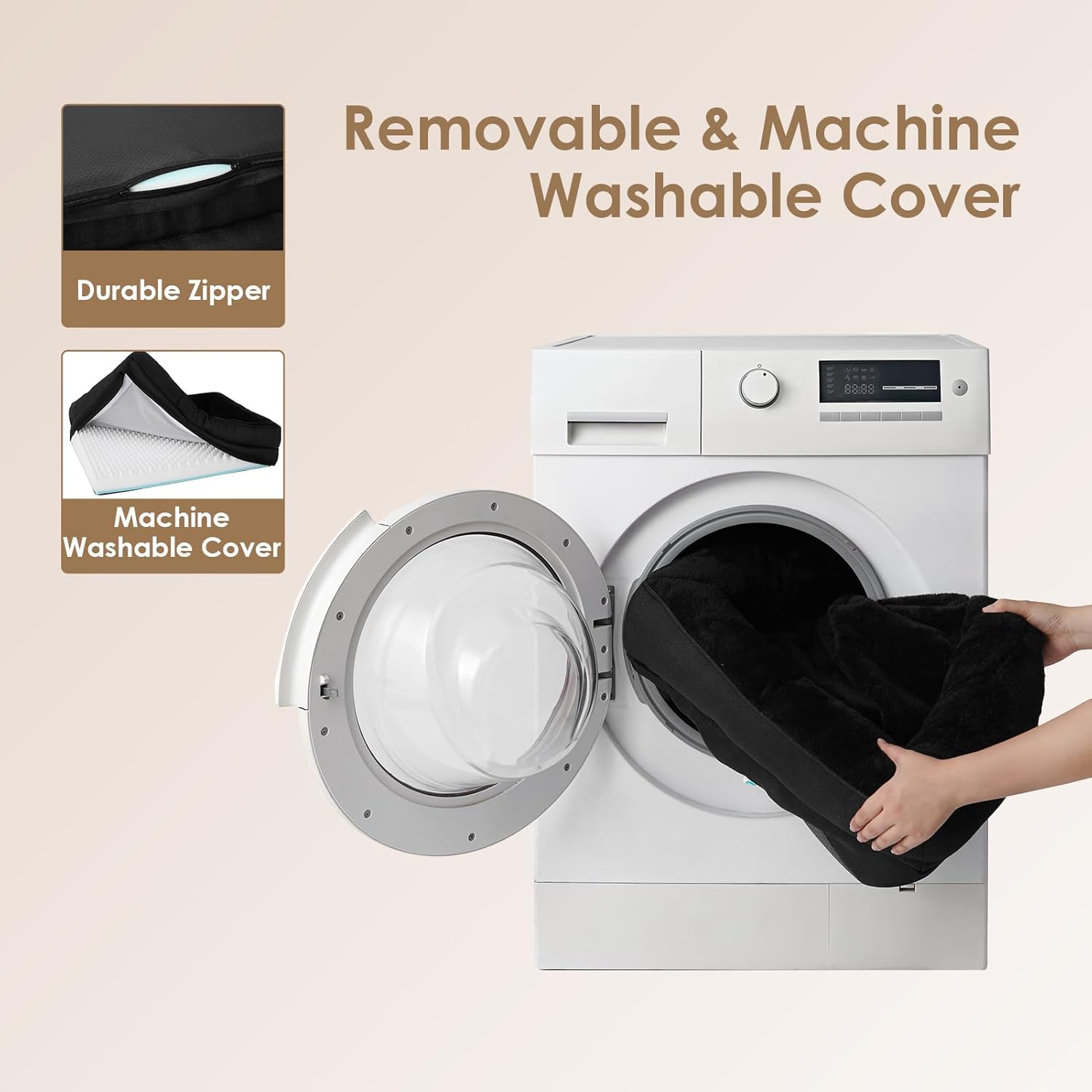 - CARE GUIDELINES: This pet bed retreat boasts a removable, machine-washable cover with a convenient zipper. Simply extract the foam core and launder the cover. Kindly remember, the foam insert is not designed for washing. Postunpacking, allow 24-48 hours for the bed to fully inflate.