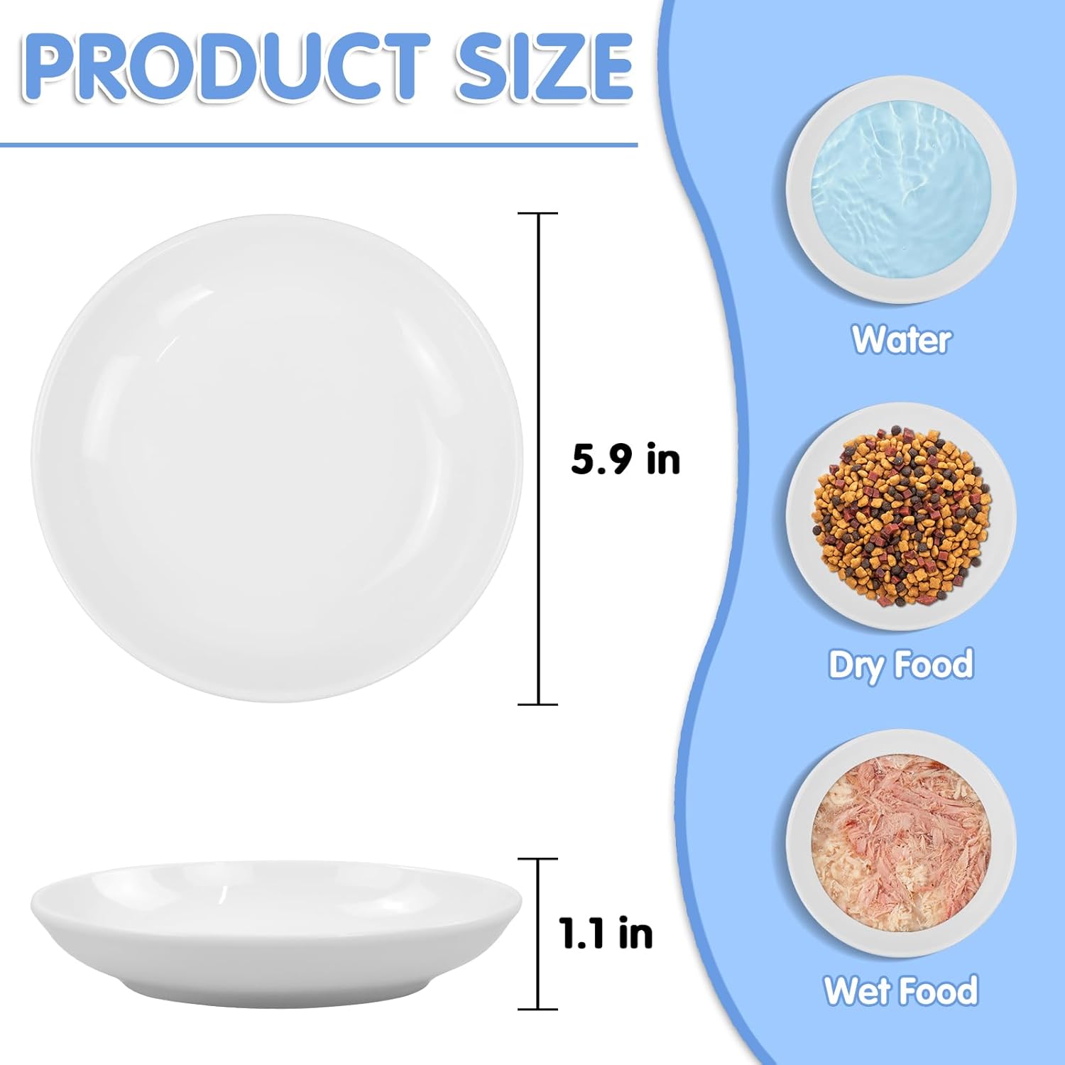 - 🐾【6 Cute Cat Bowls Set to Meet Various Needs of Multi-Cat Families】The white bowls make the food look more delicious, easier to attract the cat's attention and increase the cat's appetite. The 6 white cat bowls can easily meet the various needs of families with multiple cats and other pets: puppies, rabbits, hamsters. The cat food bowl can also be used to hold different foods: wet and dry food, cat snacks, kitten milk, water.