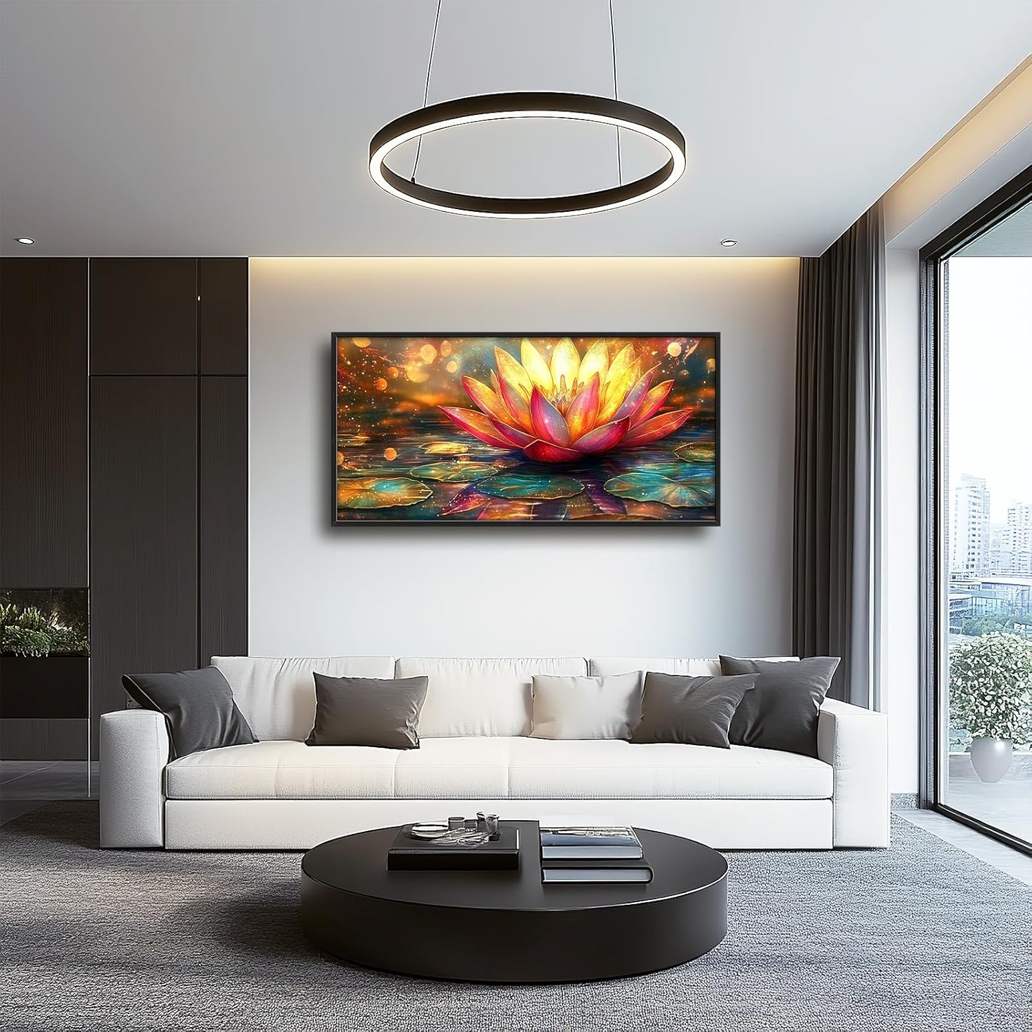Framed Large Lotus Wall Art for Living Room, Oversized Lotus Flower Wall Decor Zen Golden Floral Canvas Painting Modern Artwork Home Decoration for Living Room Bedroom Office 60"x30"