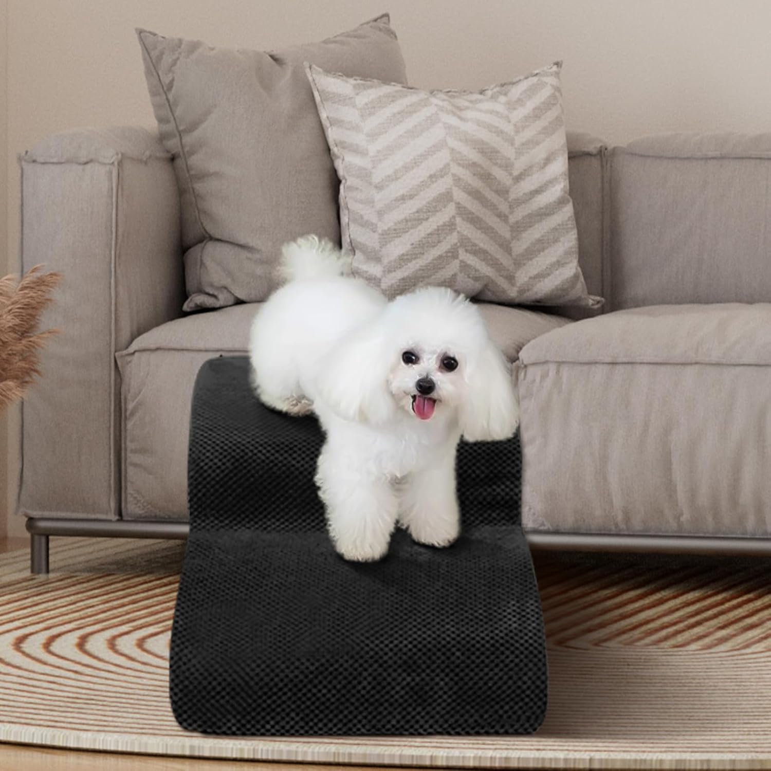 - Light Weight But Sturdy: The pet stairs are made of 33D high-density, high-resilient lightweight foam. The rebound foam stairs are stable and not easy to deform, have good supportability, and are easy to move