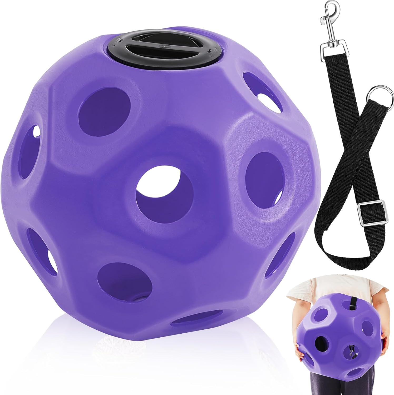 - Built to Last: the hay ball is made from pp plastic, ensuring safety, reliability, and no harmful odor; The accompanying hanging strap is crafted from tear resistant nylon with a sturdy lock for convenience in opening and closing