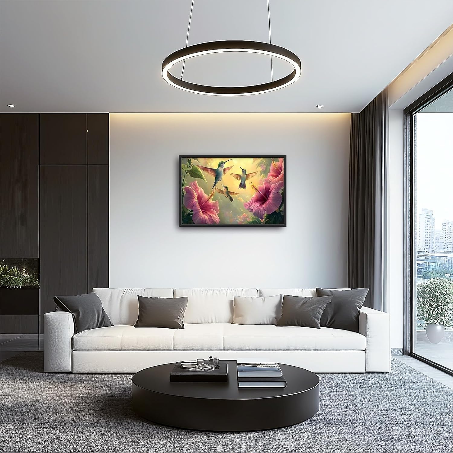 Framed Large Hummingbird Wall Art for Living Room, Oversized Rustic Bird Flower Wall Decor Floral Canvas Painting Nature Sunrise Pictures Modern Artwork for Bedroom Office Dinging Room 36"x24"