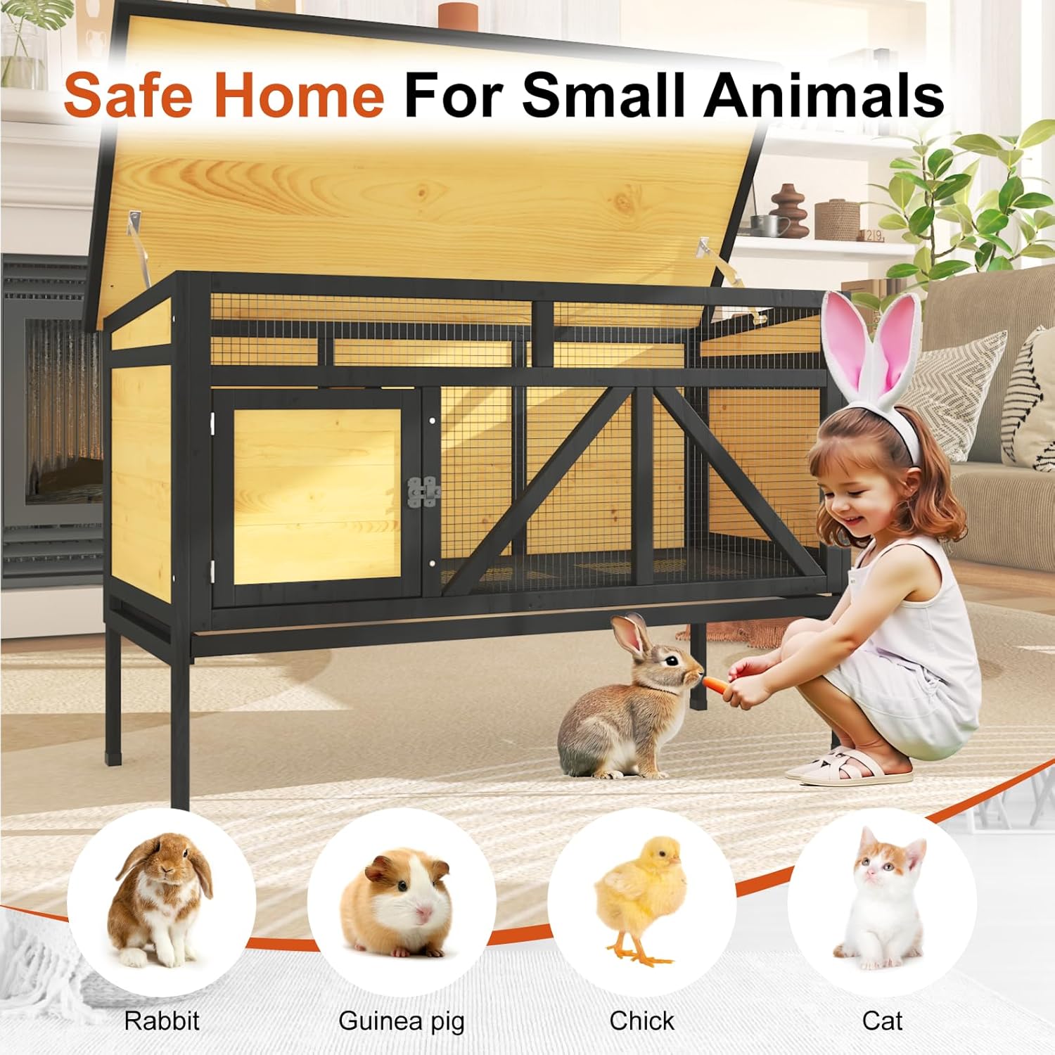 - Versatile Usage Options for Different Settings:Designed for both indoor and outdoor use, the TIMHAKA rabbit hutch offers great flexibility. You can place it in your living room or bedroom as a rabbit cage indoor to keep your pets close by and under your watchful eye. Alternatively, set it up in your backyard or garden as a rabbit hutch outdoor, allowing your furry friends to enjoy the fresh air and natural surroundings. Its multi - purpose nature makes it an ideal choice for pet owners with different living situations and preferences, just like these well - designed bunny cages.