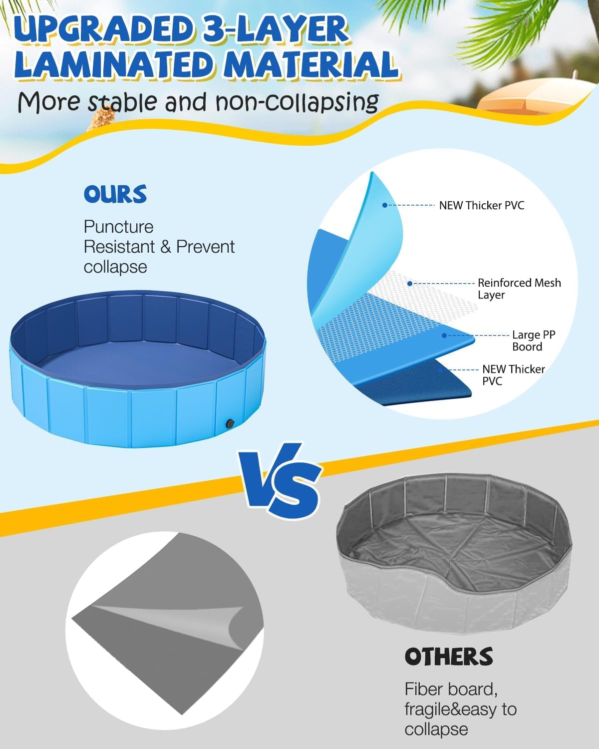 - PORTABLE & CONVENIENT โ The dog bath pool is portable and convenient for people to carry and store at any time, which allows your lovely pets to enjoy in the water; There is no need to inflate