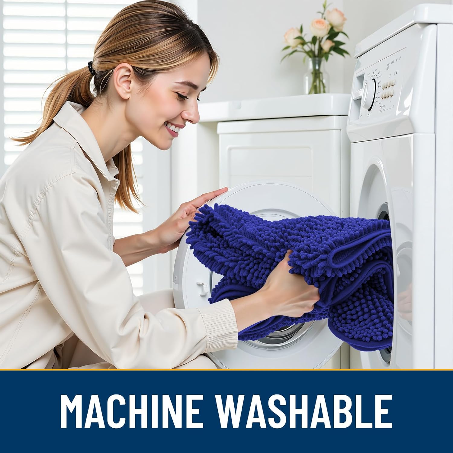 Smiry Dog Door Mat for Muddy Paws 47x32, Absorbs Moisture and Dirt Doormat, Non-Slip Washable Quick Dry Chenille Front Door Mat Indoor Entrance, Entryway Carpet for Inside Floor, Navy Blue