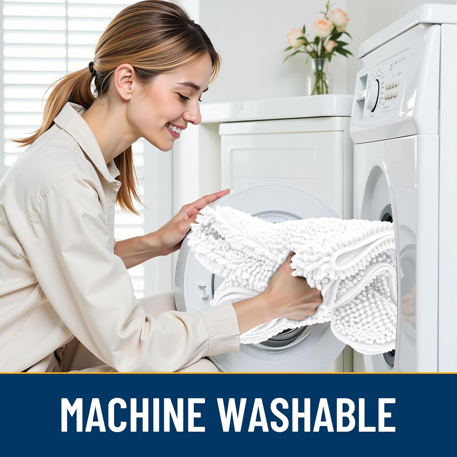 Smiry Dog Door Mat for Muddy Paws 36x24, Absorbs Moisture and Dirt Doormat, Non-Slip Washable Quick Dry Chenille Front Door Mat Indoor Entrance, Entryway Carpet for Inside Floor, White
