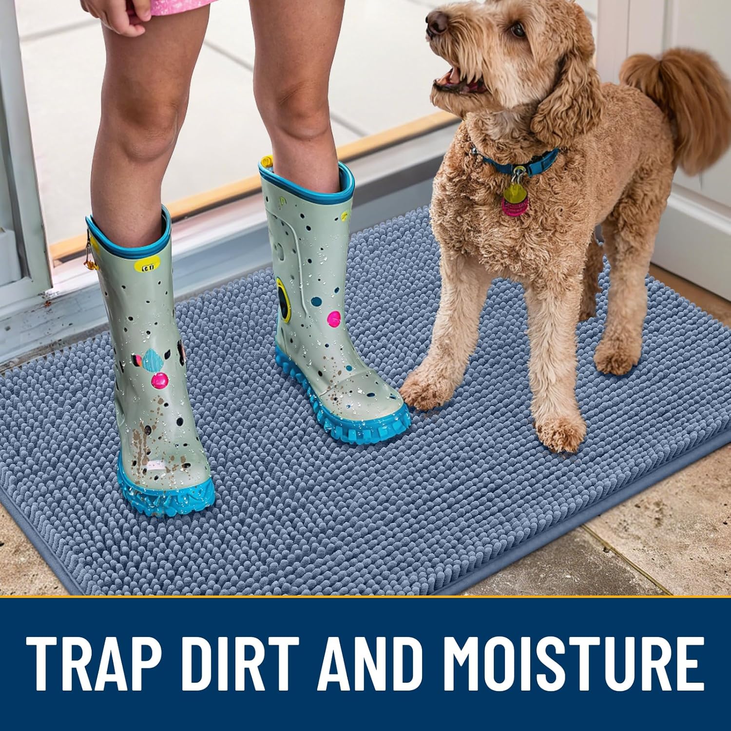 Smiry Dog Door Mat for Muddy Paws 30x20, Absorbs Moisture and Dirt Doormat, Non-Slip Washable Quick Dry Chenille Front Door Mat Indoor Entrance, Entryway Carpet for Inside Floor, Airy Blue