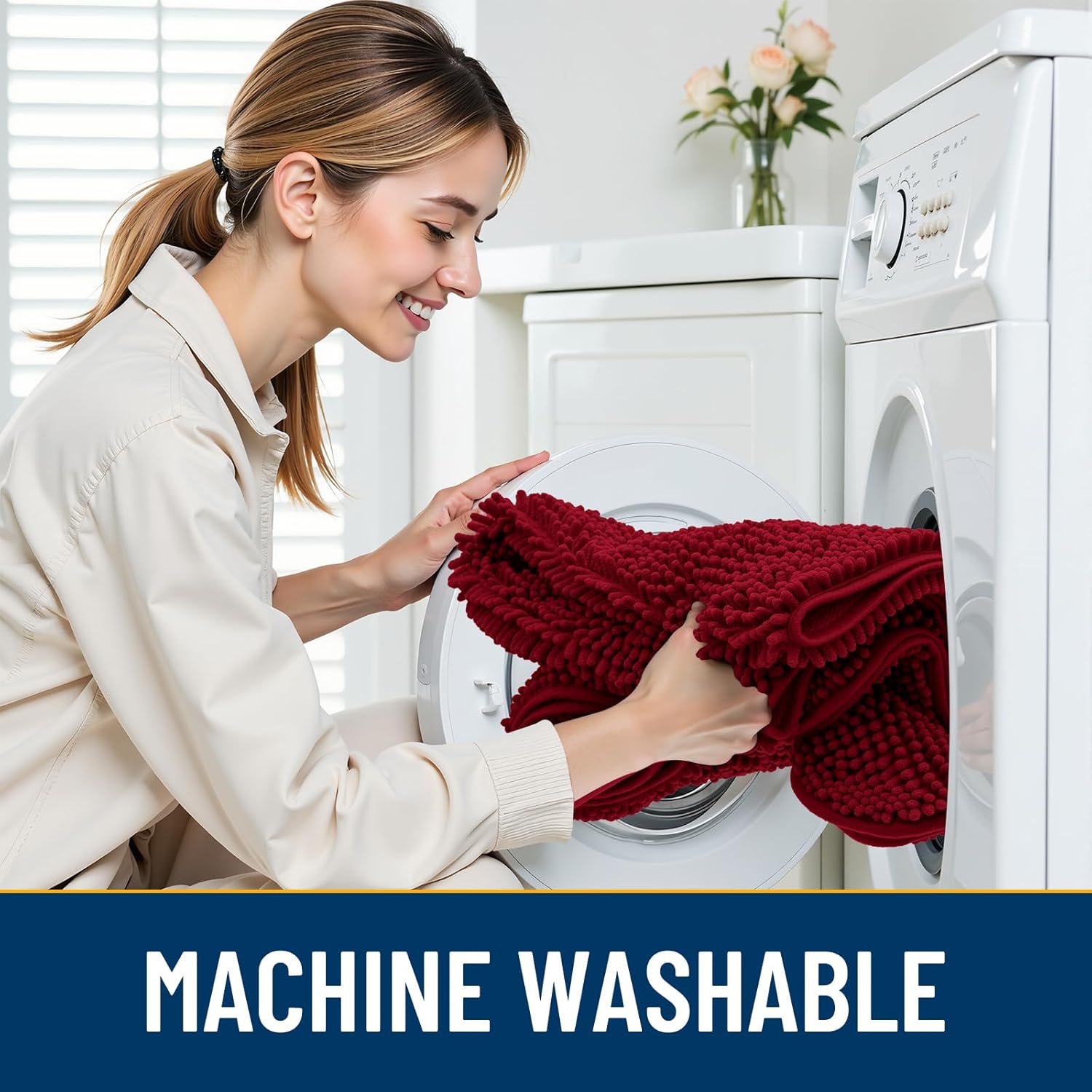 - [Easy Clean and Care] Our indoor door mat for muddy paws is also easy to clean and maintain. Simply shake off the dust or machine wash it for a deeper clean. It dries quickly, so you can be sure it's ready to use again in a short time. Please wash with cold water and dry naturally or at low temperature.