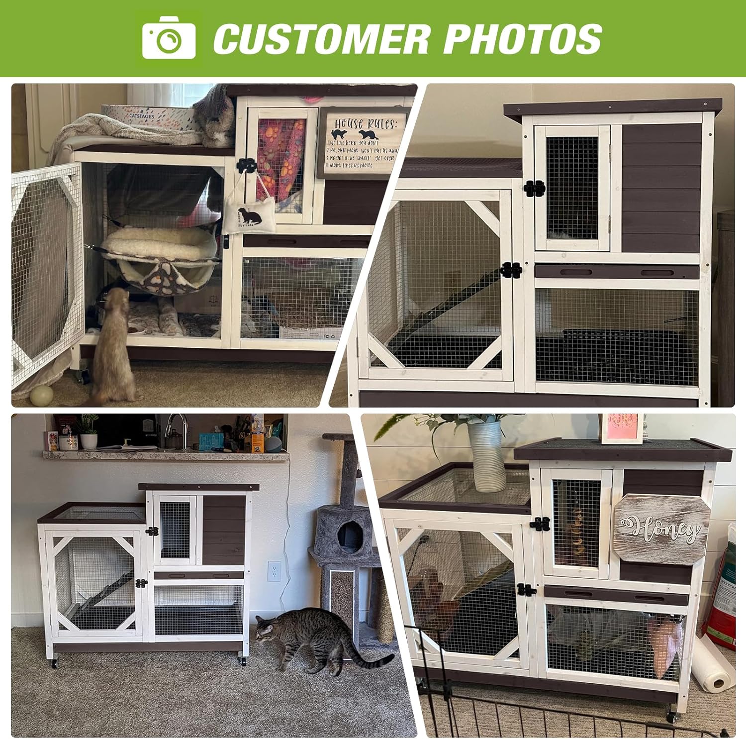 - 【Spacious Two-Story Design】Our rabbit hutches feature a unique two-story structure that provides plenty of space to explore and play.With a ramp connecting the lounge and activity areas, cute little pets can enjoy a cozy sleep.