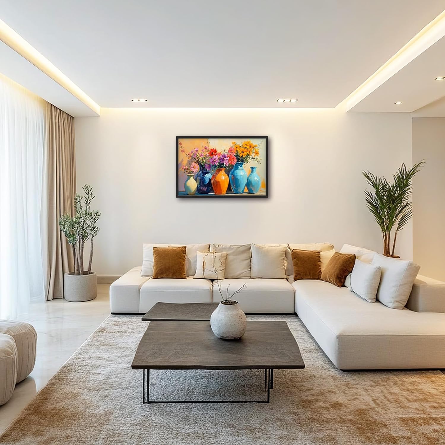 Large Colorful Floral Wall Art for Living Room, Framed Oversized Asian Flower Vase Decor Canvas Painting Sunlight Pictures Modern Artwork for Bathroom Bedroom Office Dining Room 36"x24"