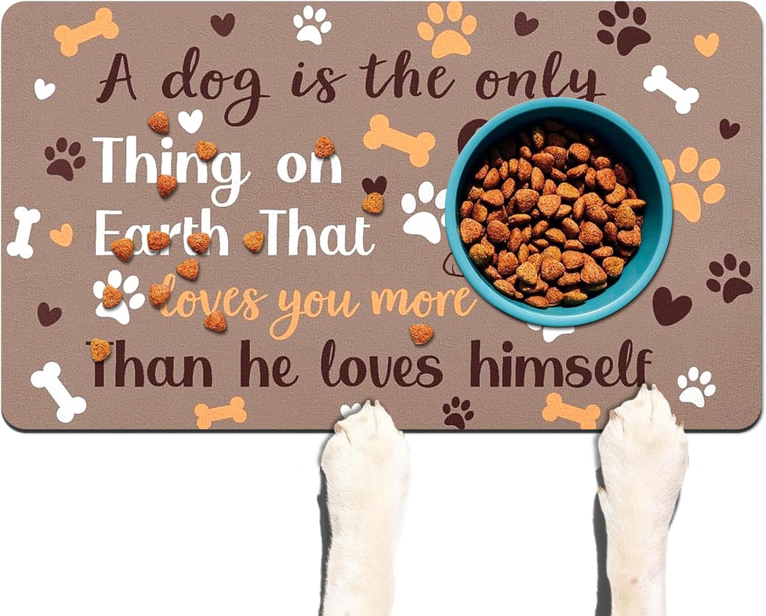 - Waterproof & Easy Clean Dog Food Mats for Floors Waterproof - Unlike regular mats, our heavy-duty dog food mat features a 100% waterproof layer that prevents liquids from seeping through the floor. Simply wipe clean your dog bowl mat after meals - no staining or odors! Works great as both a dog food mat and cat food mat.