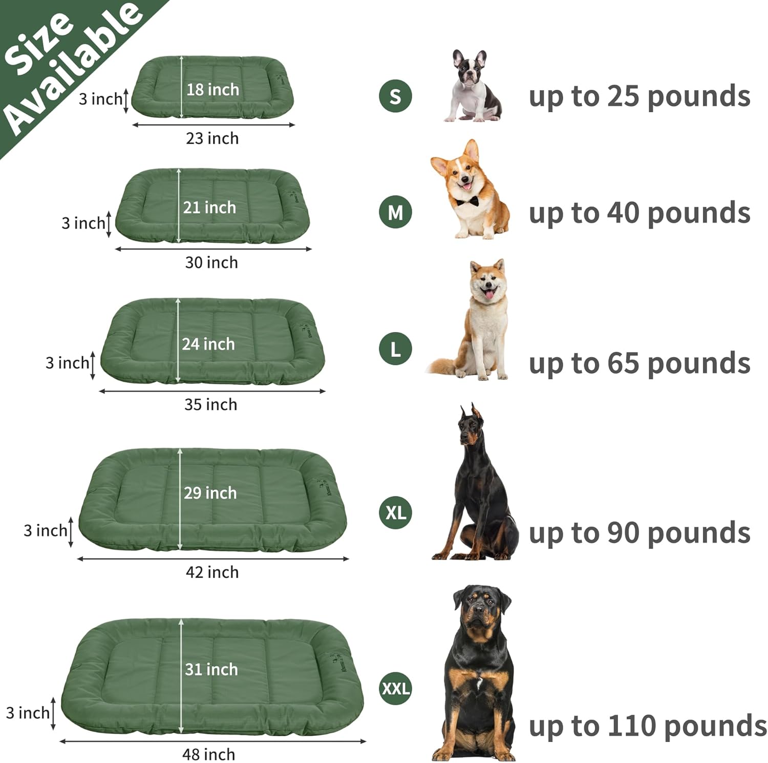 KHONSU PET Durable Dog Bed Tough and Tear Proof Dog Crate Bed, 800lbs Tear Strength PVC-Backed Waterproof Ped Bed Mat Indoor & Outdoor Use for Dogs up to 110 lbs