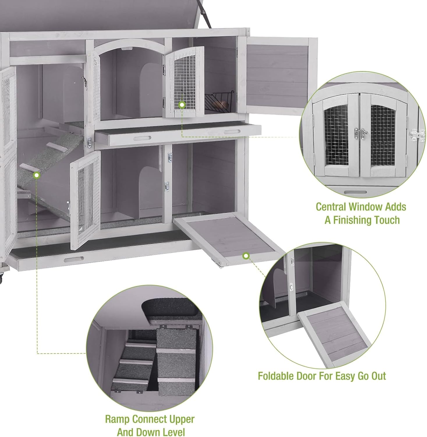 - Spacious Two Story Hutch: Two level design with a secure ramp offers your rabbits, guinea pigs, or other small animals plenty of space to explore, play, and relax
