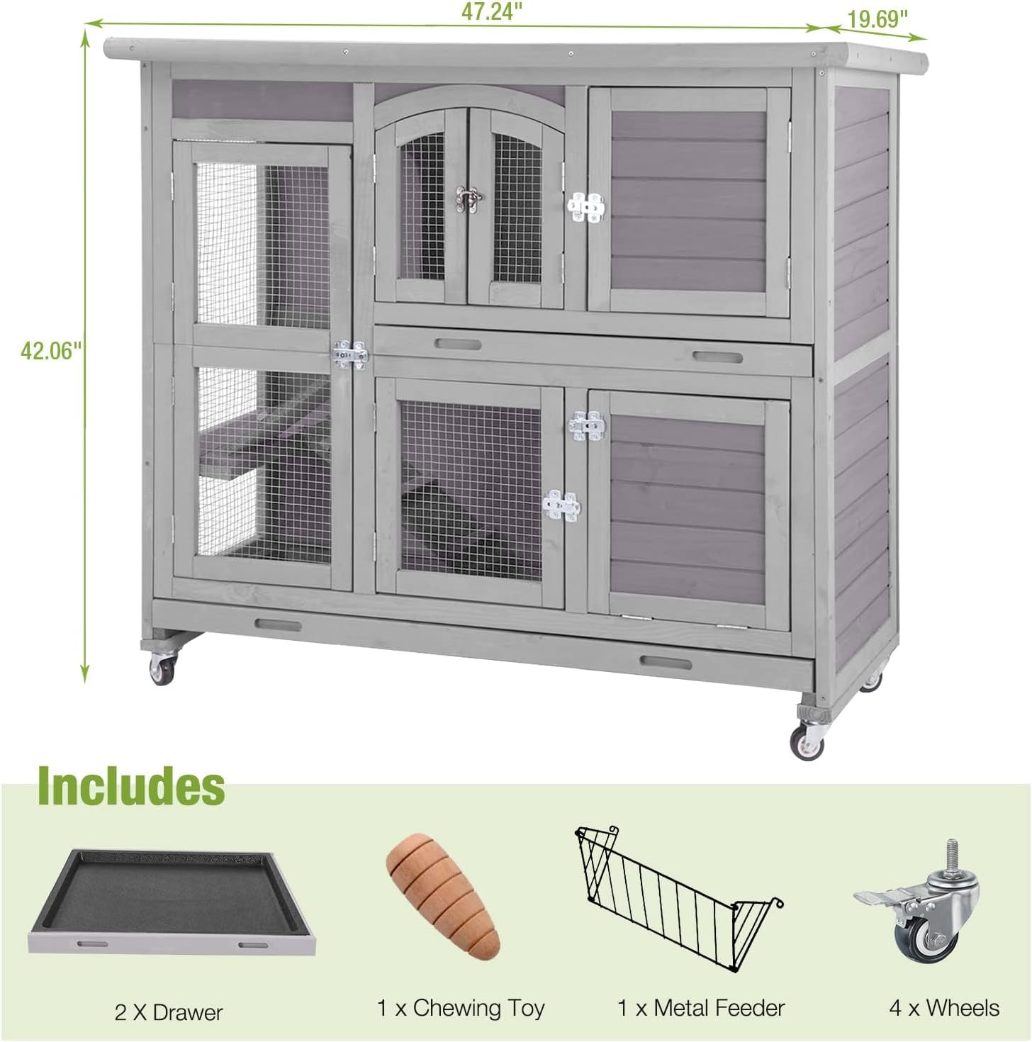 - Easy To Move: Built-in swivel wheels make it easy to move the rabbit hutch around your home or yard. Locking casters keep it securely in place when needed