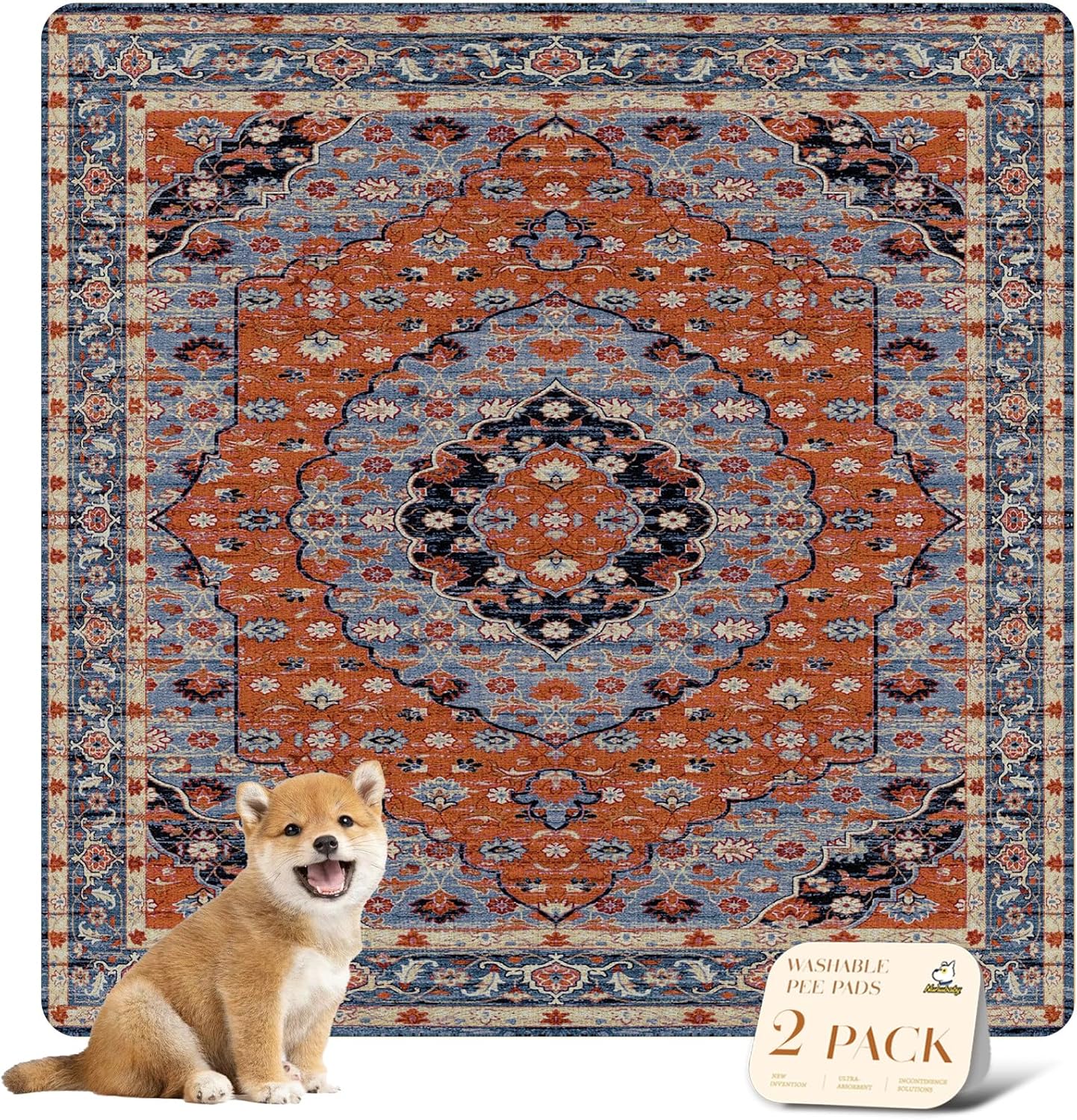 nunubaby Washable Pee Pads for Dogs, Stylish, Non-Slip and Leak-Proof Pee Pads. Reusable Potty Pads for Dogs for Crates and Floors.(Red/Multi, 48" x48")