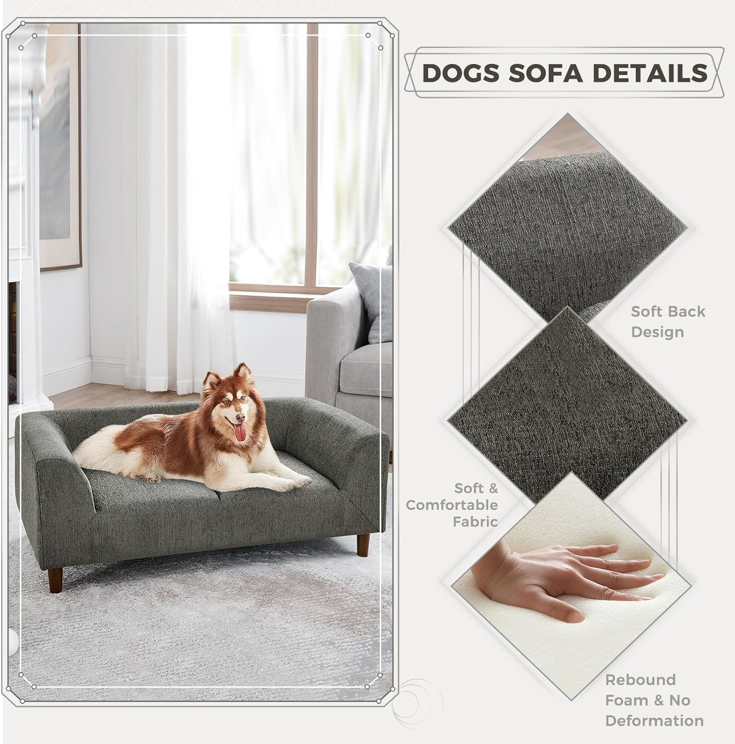 - Durable & Stylish Materials: Made from durable rubber wood, plywood, and soft linen fabric, this dog bed sofa is built to last and easy to clean.