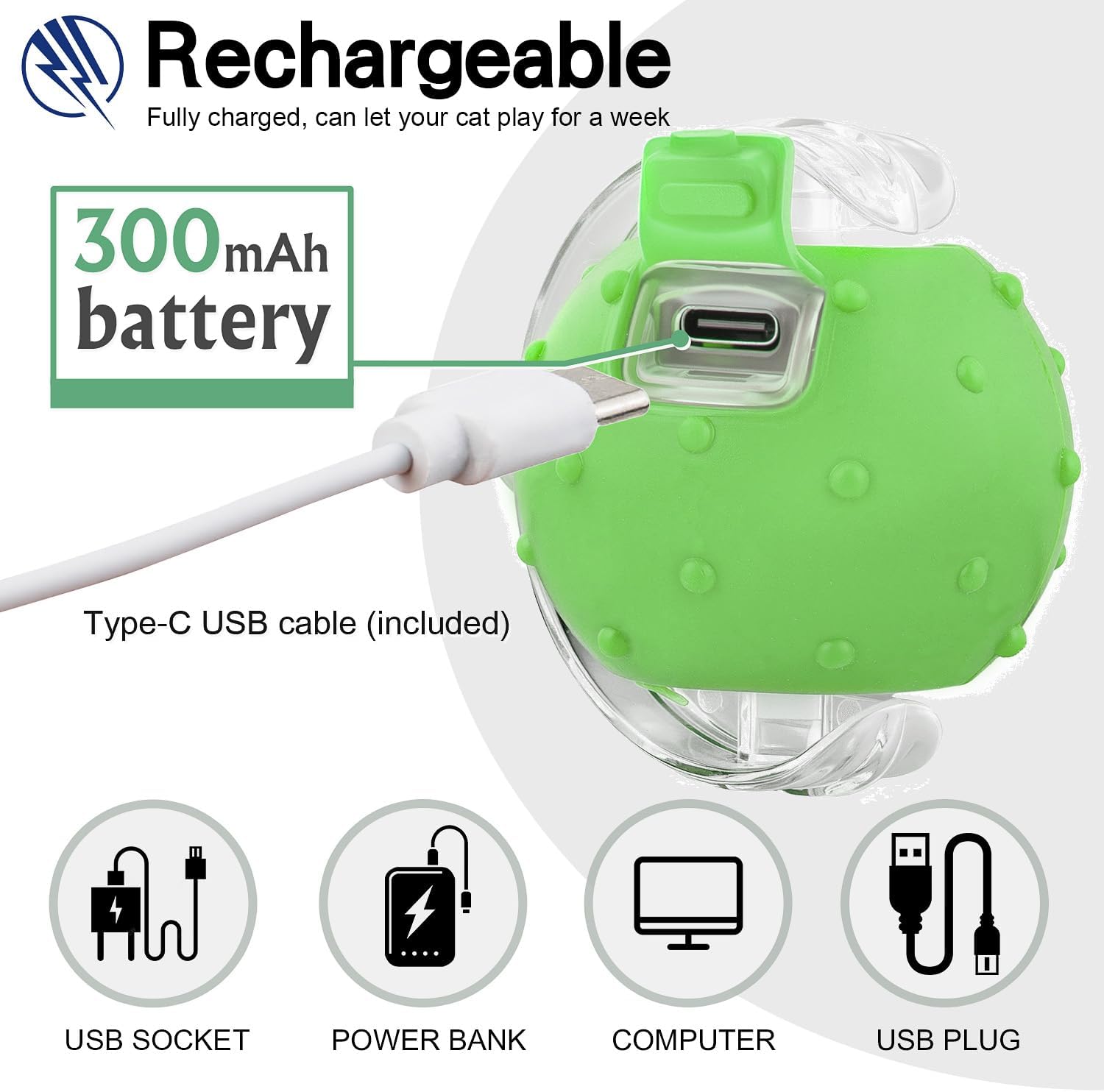 - Bird Chirping & Interesting Tail for Hunting - This automatic cat ball has realistic bird sounds, which can attract cats to be interested in this bird chirping cat toy and trigger their hunting instincts. The elastic tail accessory moves rapidly along with the ball, making your cat think it is an agile mouse and go crazy for it. Perfect hunting toy for cat. In the package, we have included two different tail accessories for your convenience of replacement.