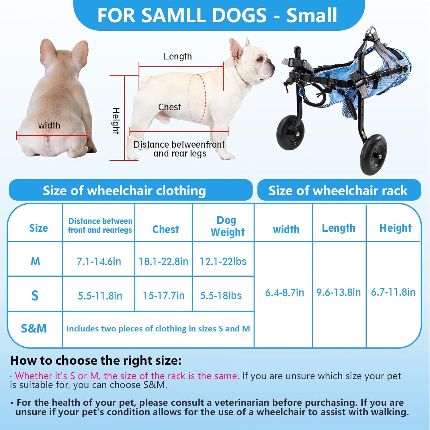 Updated Dog Wheelchair for Back Legs,Small Dog Wheelchair Carts with Wheels, Light Weight Wheelchair for Leg Support Helps Senior,Injured,Paralyzed, S & Blue