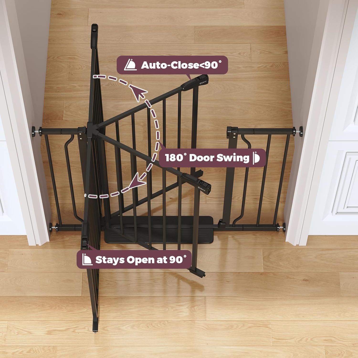 - Auto-Close Baby & Pet Gate: Designed with an intelligent self-closing system, this pet gate automatically swings shut at angle under 90°, providing reliable protection against accidental openings