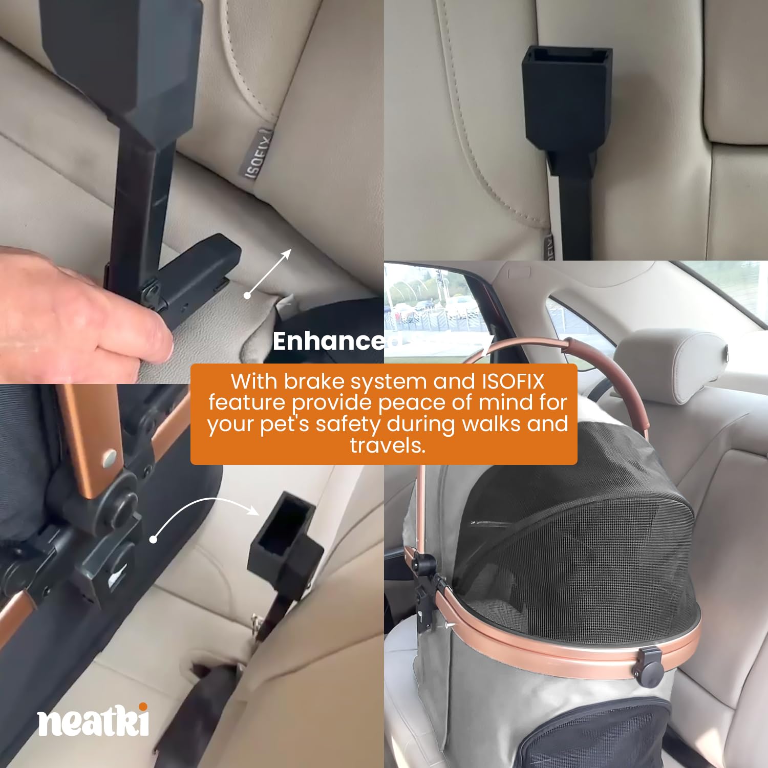 - Enhanced Safety โ Equipped with a reliable brake system, this stroller keeps your pet secure and gives you peace of mind during walks and outings. Now featuring ISOFIX for easy vehicle installation, ensuring a safer, stress-free travels with your furry friend.