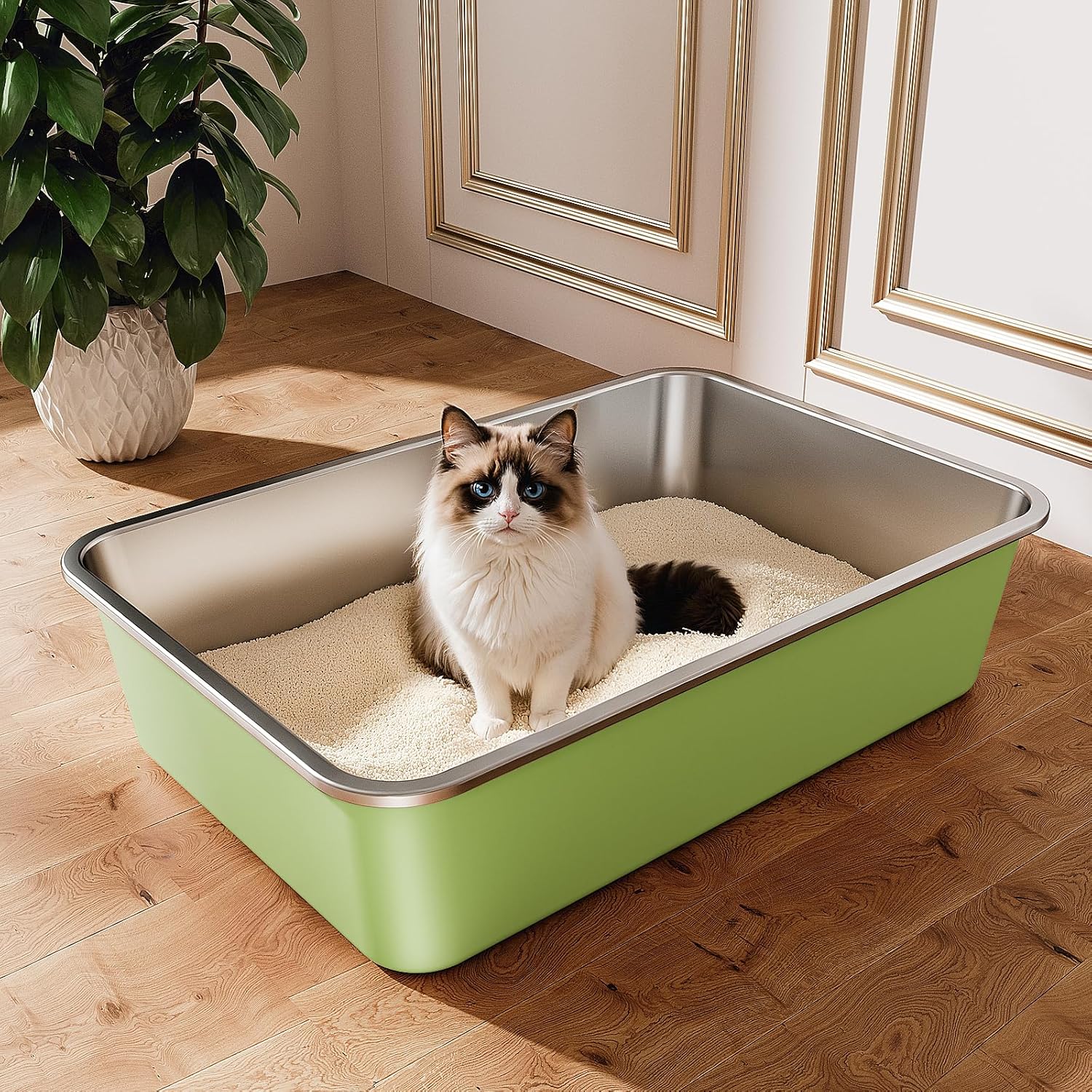 - 【Easy-to-Clean Stainless Steel】: Made from premium stainless steel, this litter box is super easy to clean and does a great job of controlling odors, providing your cat with a fresh and welcoming environment.