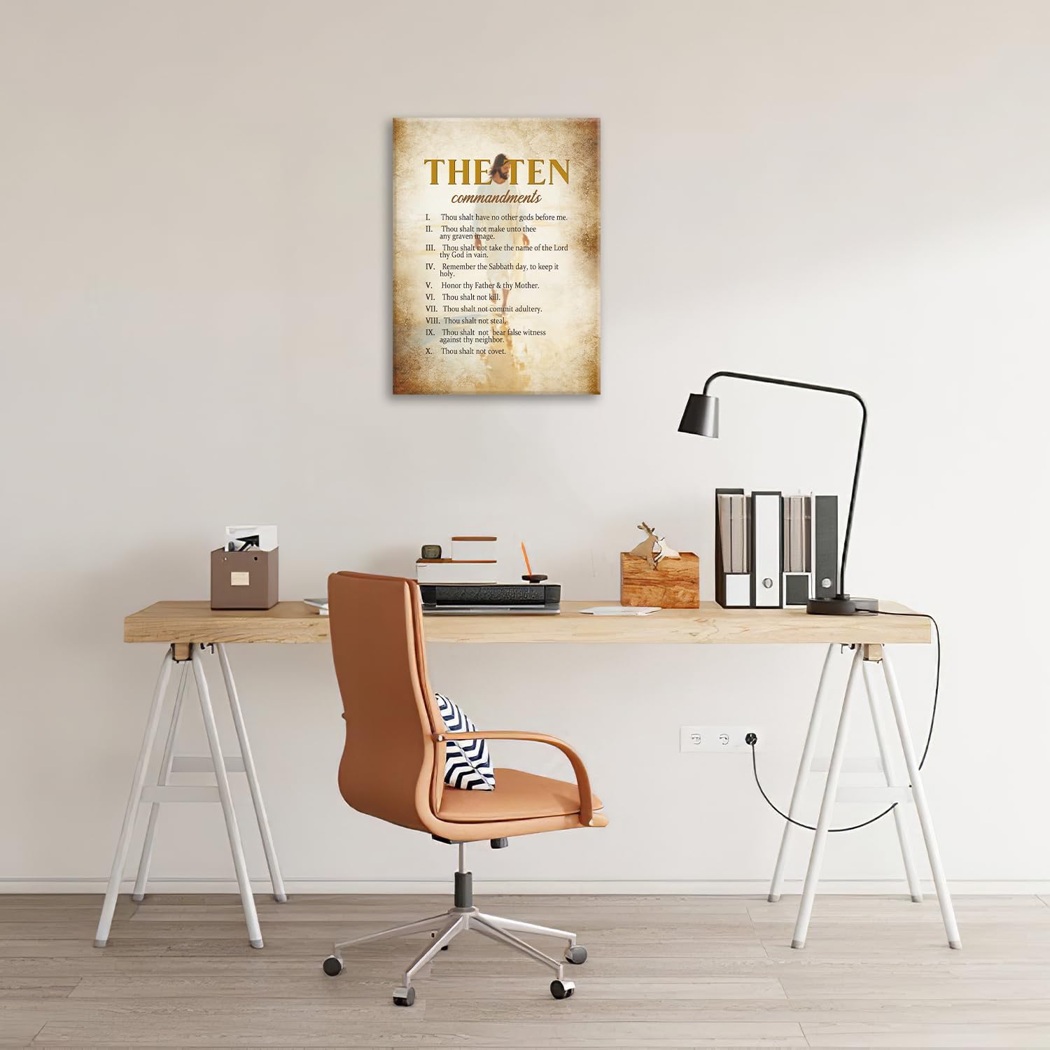 The Ten Commandments Christian Pictures Wall Art, Bible Verse Jesus Bathroom Wall Decor Religion Scripture Framed Painting Religious Canvas Artwork for Church Bedroom Living Room 20"L x 16"W