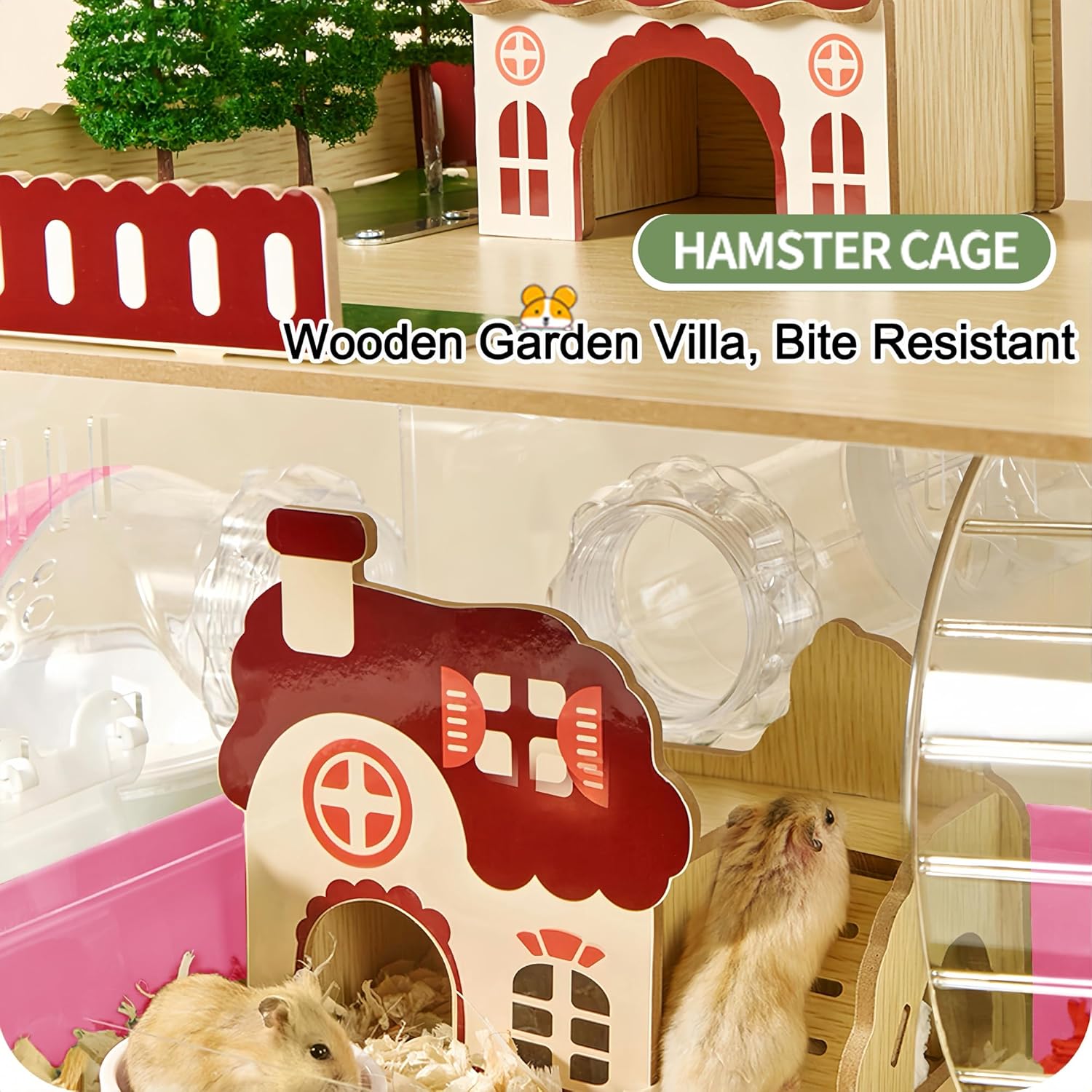 - 【Combines Beauty and Practicality】Our hamster house cage is made from thick wood and adorned with unique garden villa stickers, ensuring your pet enjoys a natural living experience while also guaranteeing long-term use.
