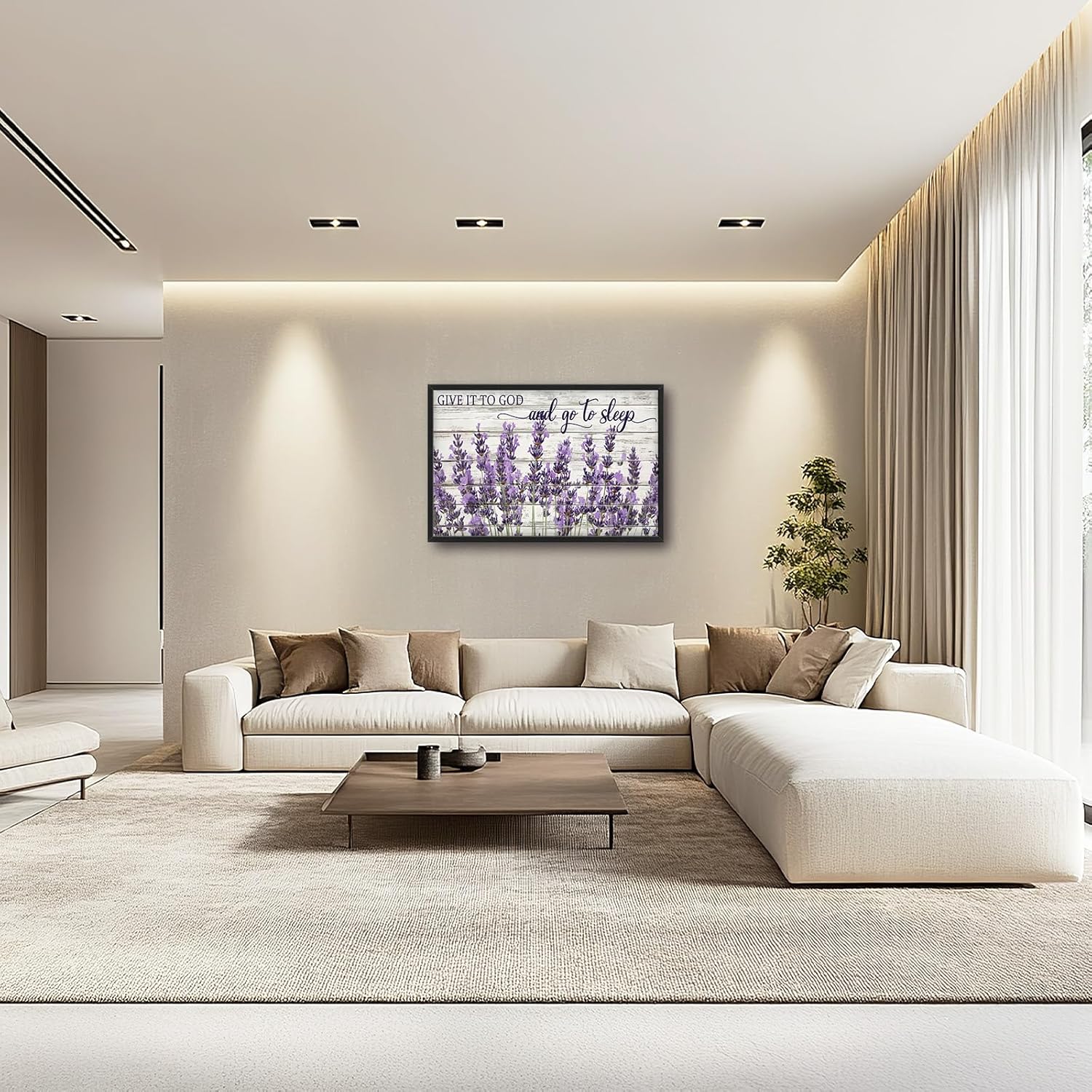 Large Lavender Wall Art for Living Room, Framed Oversized Rustic Floral Wall Decor Christian Give It To God Canvas Painting Modern Artwork for Living Room Bathroom Bedroom Office Dining Room 36"x24"
