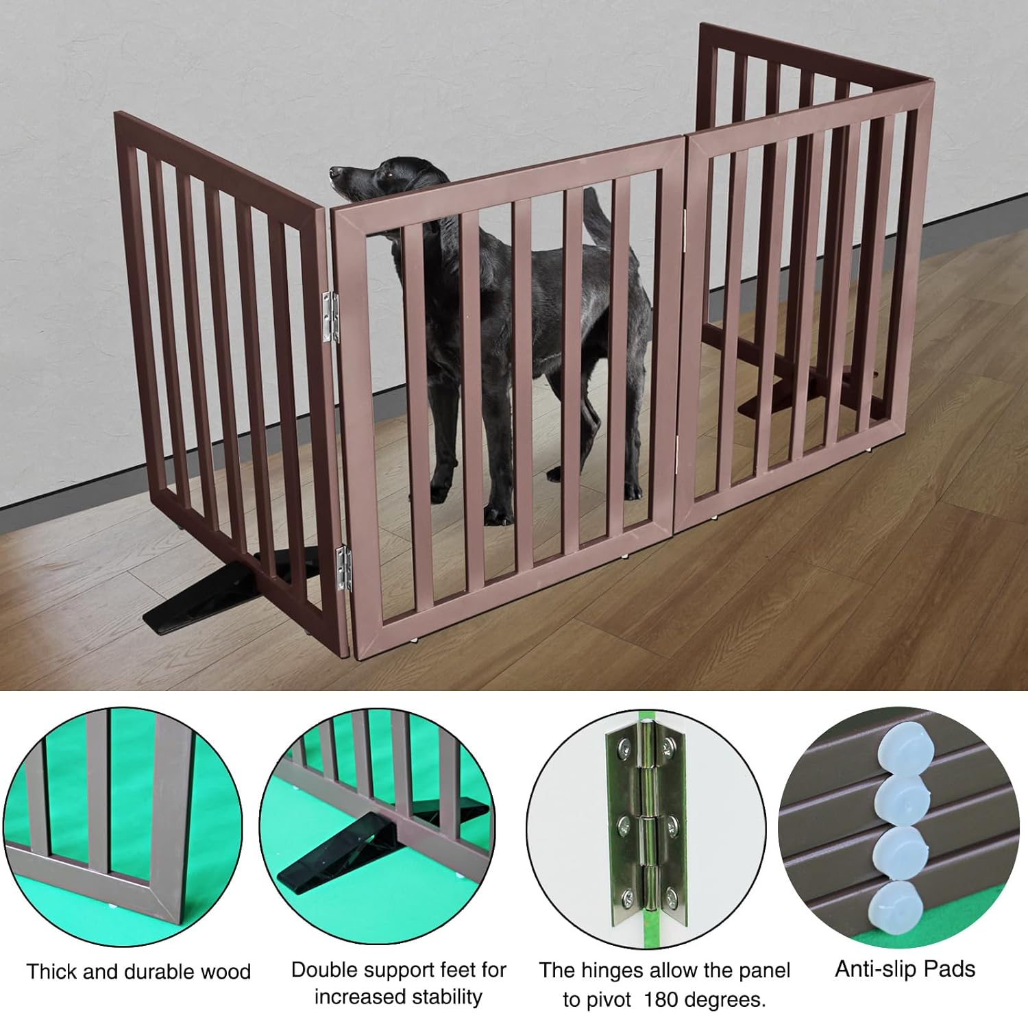 - 【4 PANELS】 Dog gates is built with 4 separate panels, secured together with sturdy stainless steel hinges.dog gates is a dog fence, room divider, and pet pen all in one.
