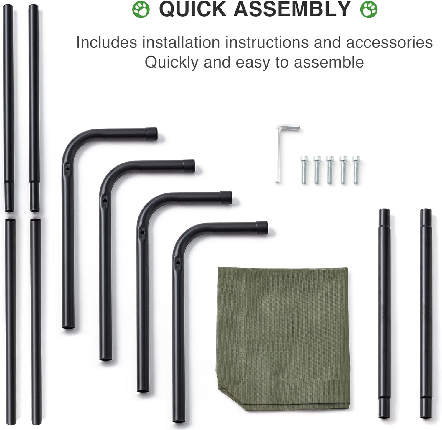 - EASY TO ASSEMBLE: Easy to assemble and disassemble for transport, including: 1 mesh, 4 legs, 2 leg extension rods, 4 cross support extension rods, 4 screws (WON’T rust) and 1 hex key. Off-the-ground design is perfect for both indoors and outdoors, you can place a dog pad on top of the mesh like a mattress to make it softer in your living room, also it is convenient for traveling, camping, hiking, fishing, BBQ, etc .