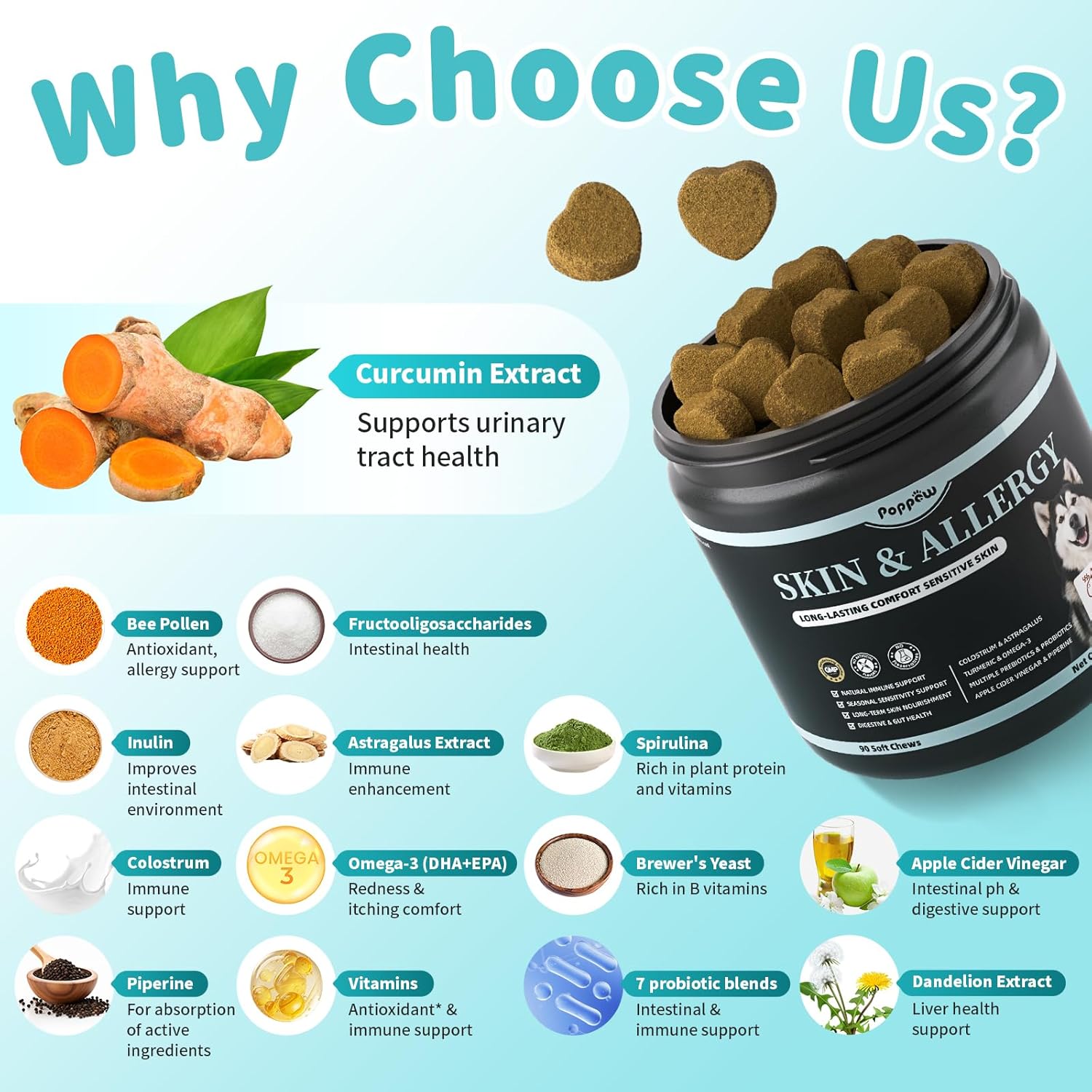 - Formulated for Better Absorption: For the utility of every ingredient, our dog seasonal allergy chews include black pepper extract (Piperine). This key ingredient is included to support the normal absorption of nutrients like turmeric, ensuring your dog can fully utilize the potent ingredients in our formula