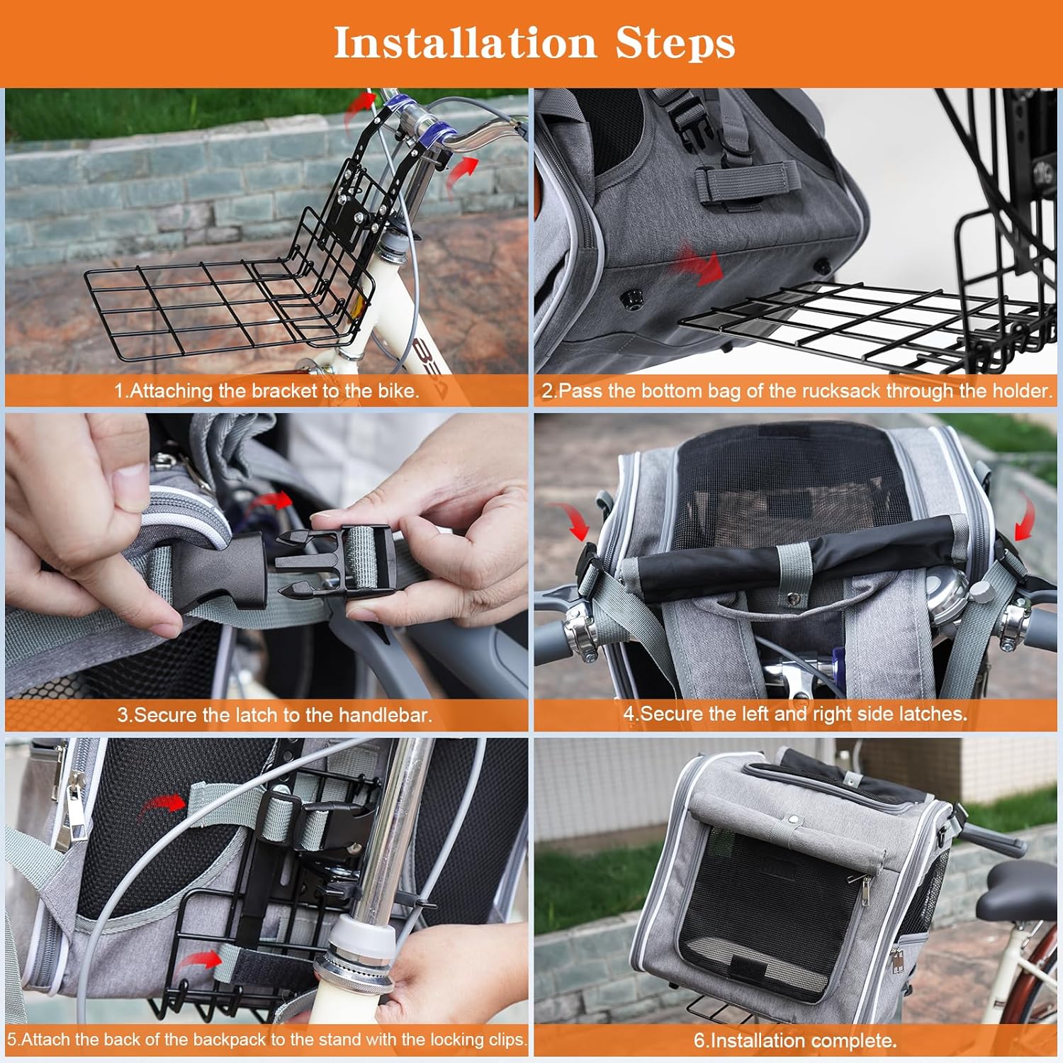 - Easy-Dismantle Foldable Design: This dog bike basket comes with a special toolkit to ensure a quick and hassle-free installation. Follow the instructions to attach the bike carrier to your handlebars. Then attach the bag to the bracket and bike, the convenient buckle design and adjustable straps allow you to easily attach or detach the pet bag.Folding design for easy storage without taking up space.