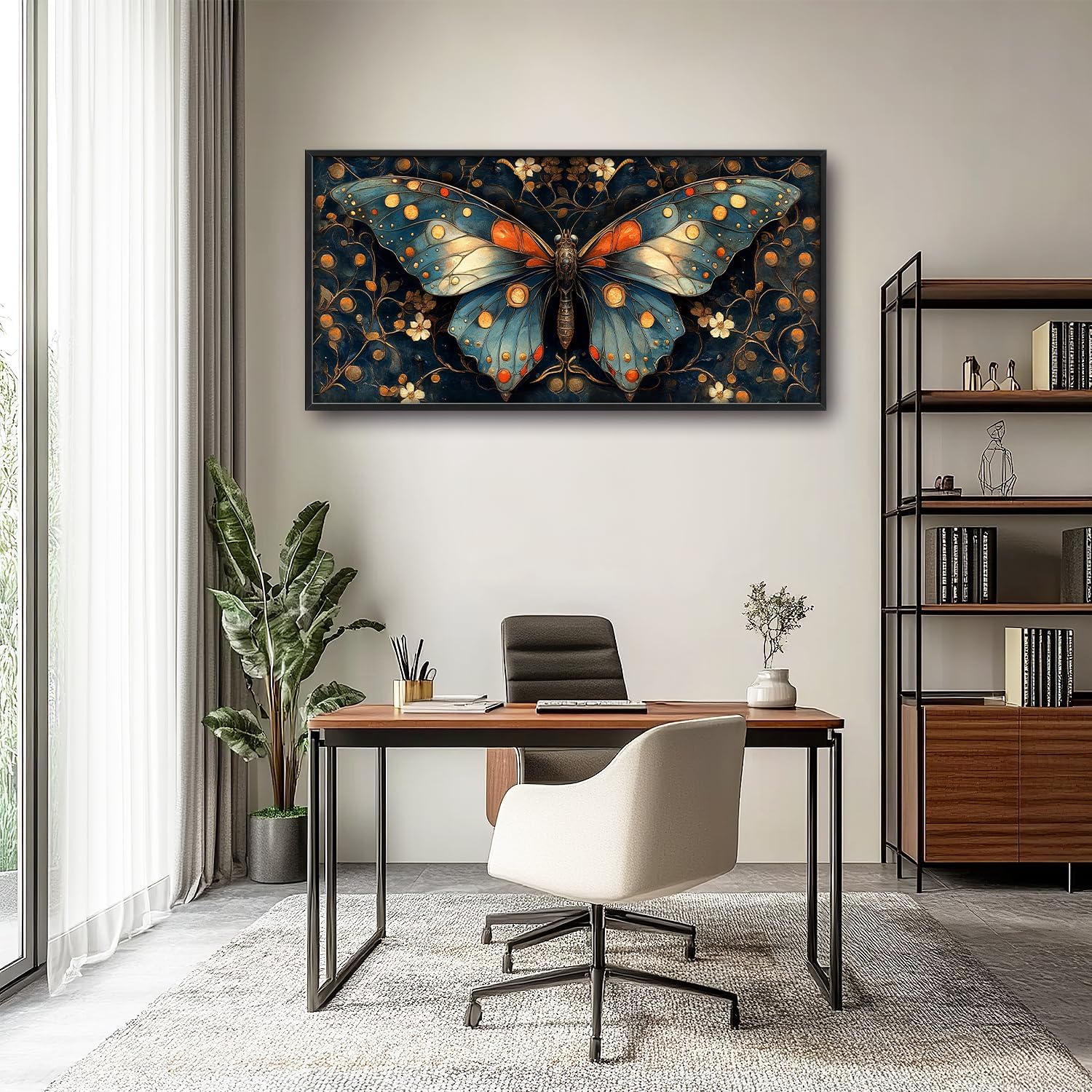 Large Butterfly Wall Art for Living Room, Butterfly Canvas Oversized Wall Decor, Floral Aesthetics Framed Pictures Painting Print Artwork for Bedroom Office 60L" x 30W"