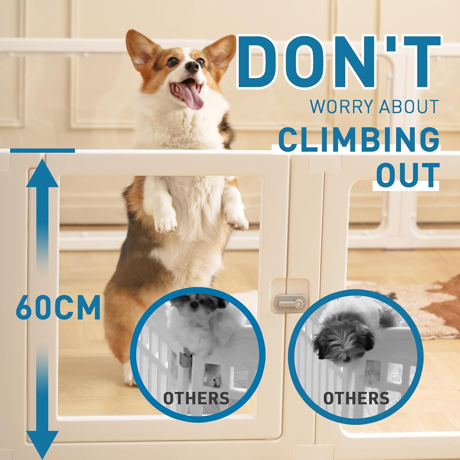 Citylife Dog Playpen with Door Clear Pet Playpen for Indoor Outdoor Easy to Install and Remove Puppy Playpen for Dogs, Cats, Bunnies, Pigs, 10 Panels
