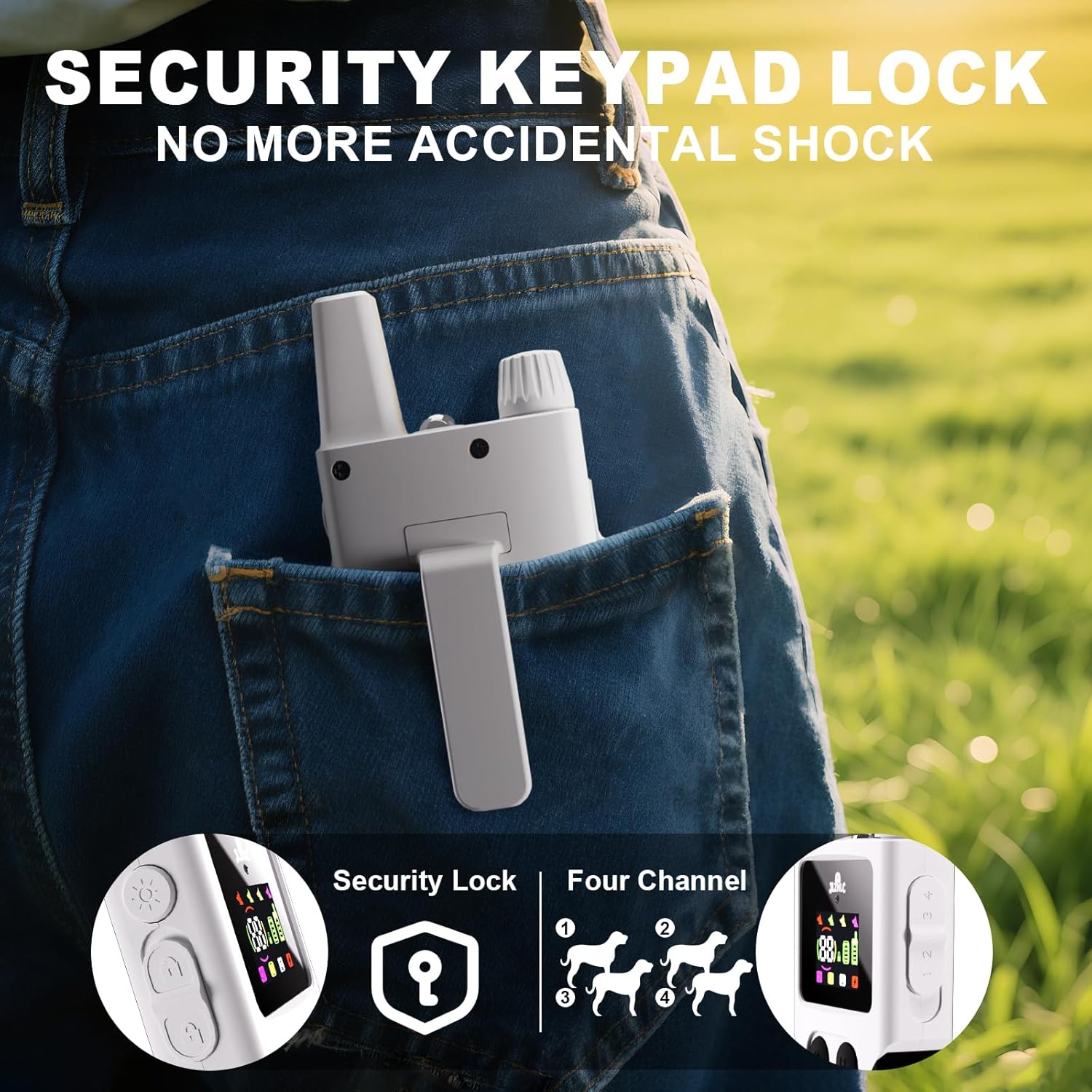 - 【IPX7 Waterproof & Security Lock】 With an IPX7 waterproof rating, this electric dog collar is designed for use in all weather conditions. The secure on/off switch ensures no accidental activation, providing peace of mind while you carry it around