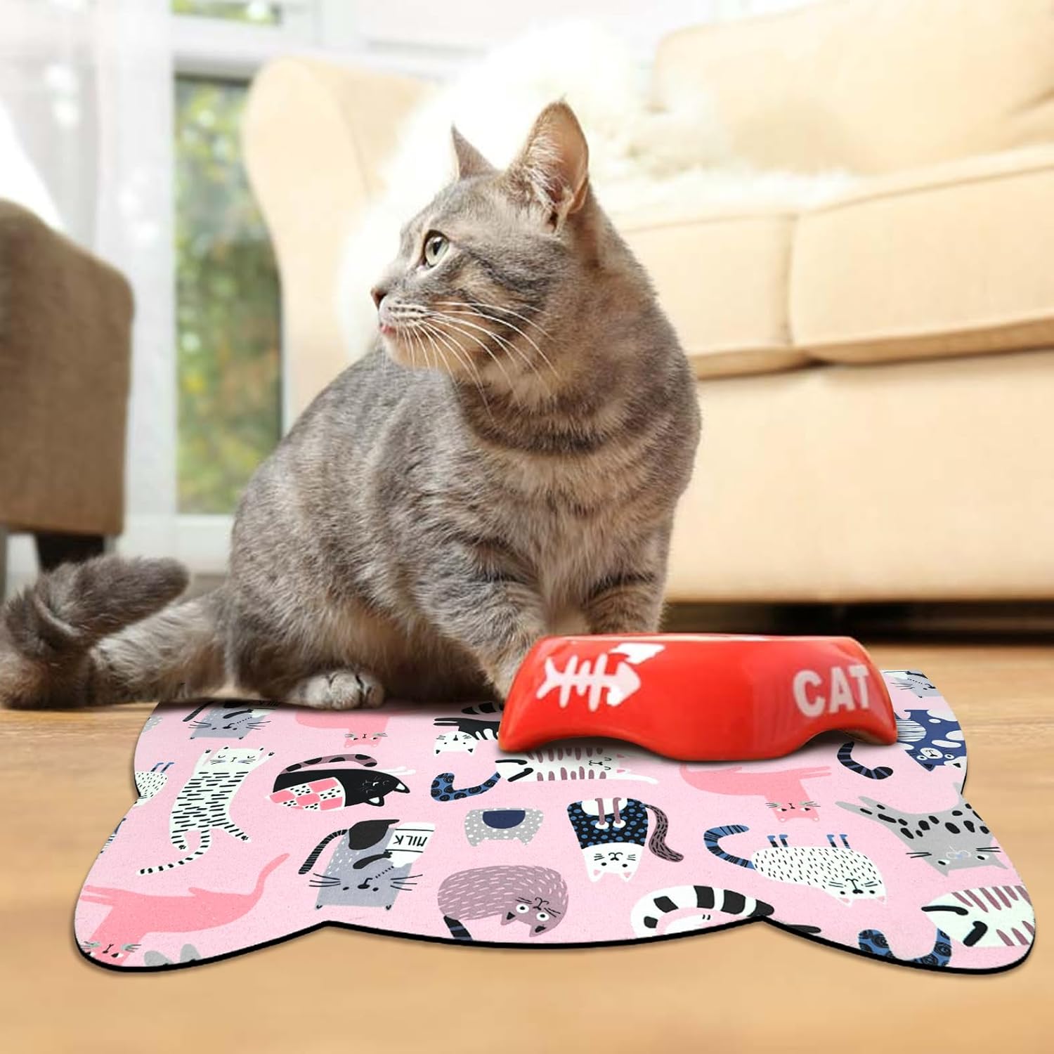 - 【Fun & Fashionable Print】These cat eating mats come in a variety of different shape and printing design, which allow you to choose a design that matches your home decoration and added a touch of personality and uniqueness to your pet's feeding area